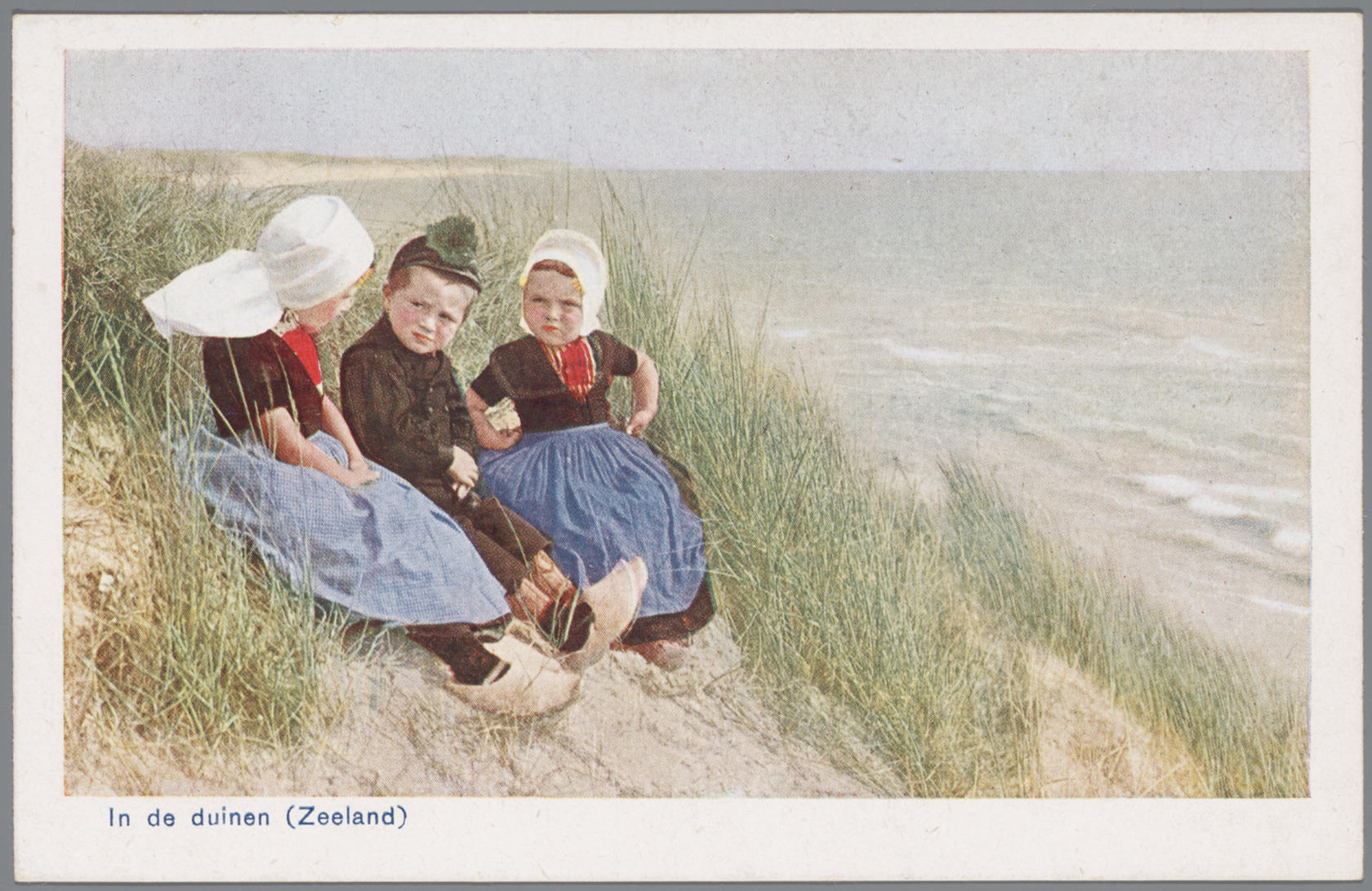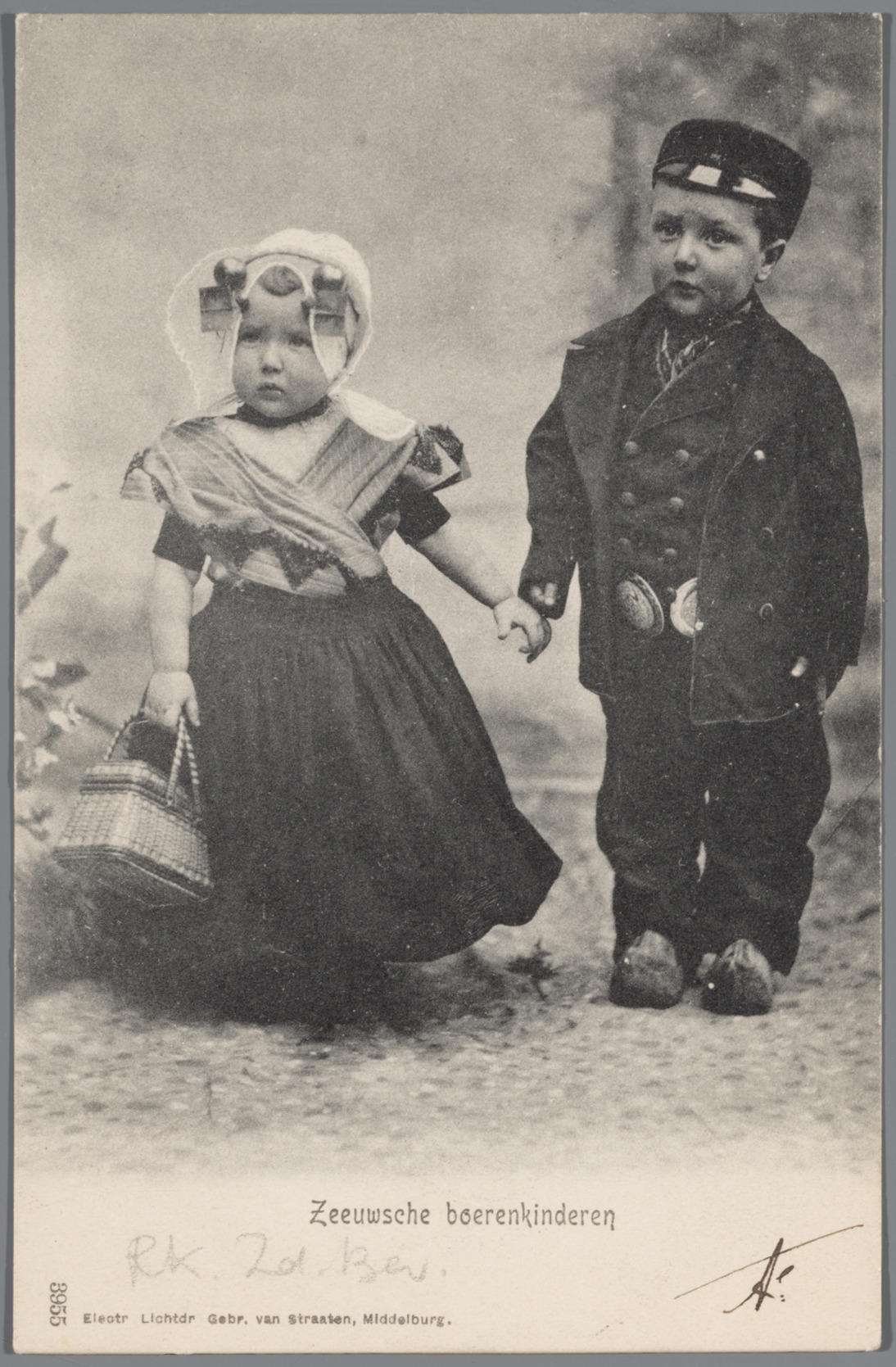 Twee meisjes en een jongen in Walcherse streekdracht
