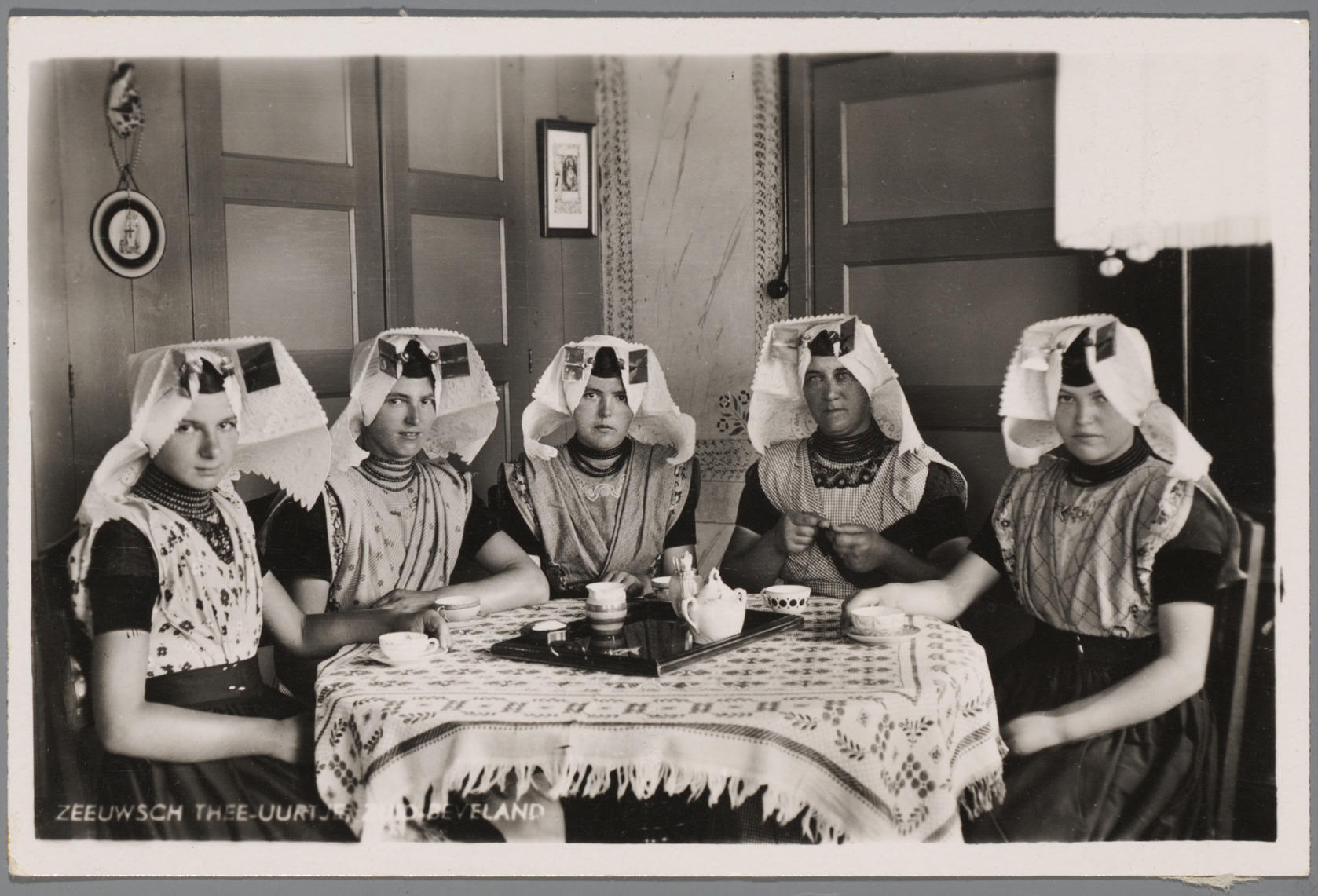 Ansichtkaart van vijf vrouwen in katholieke Zuid-Bev...