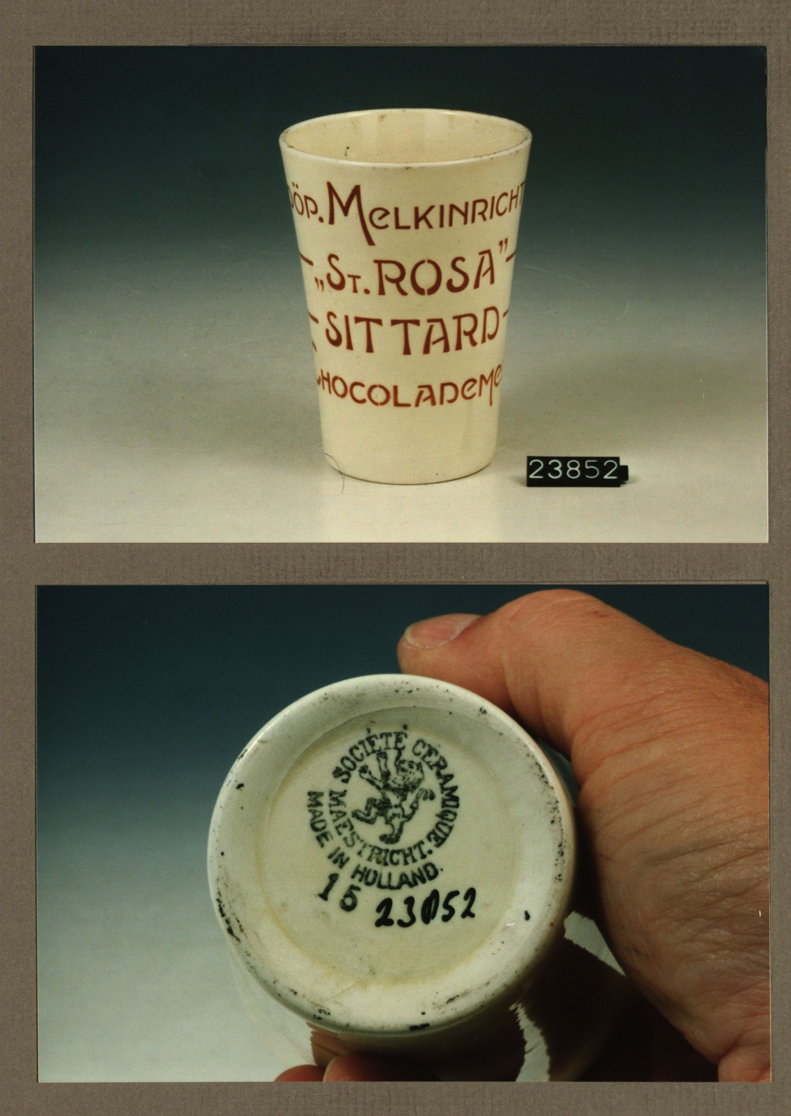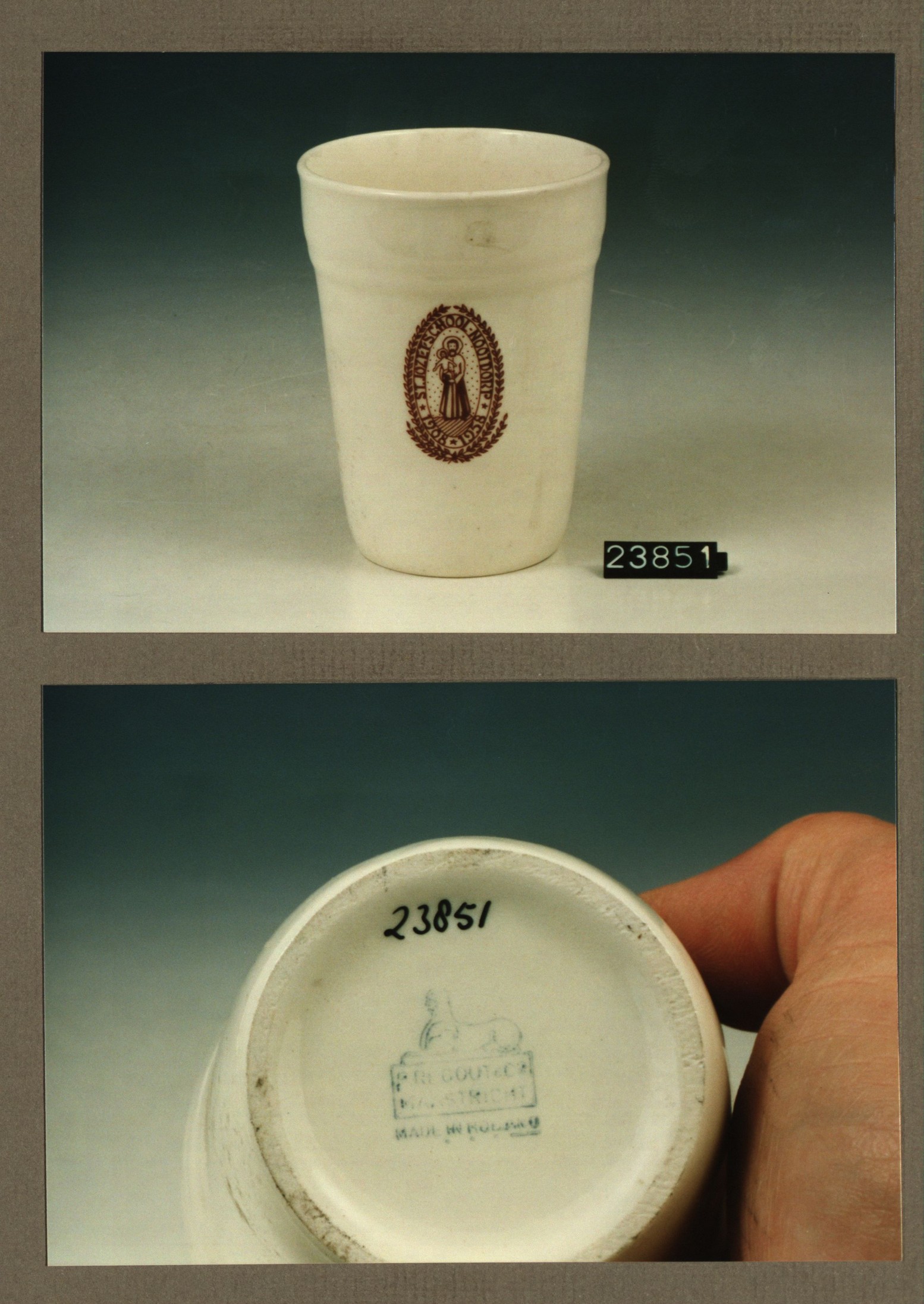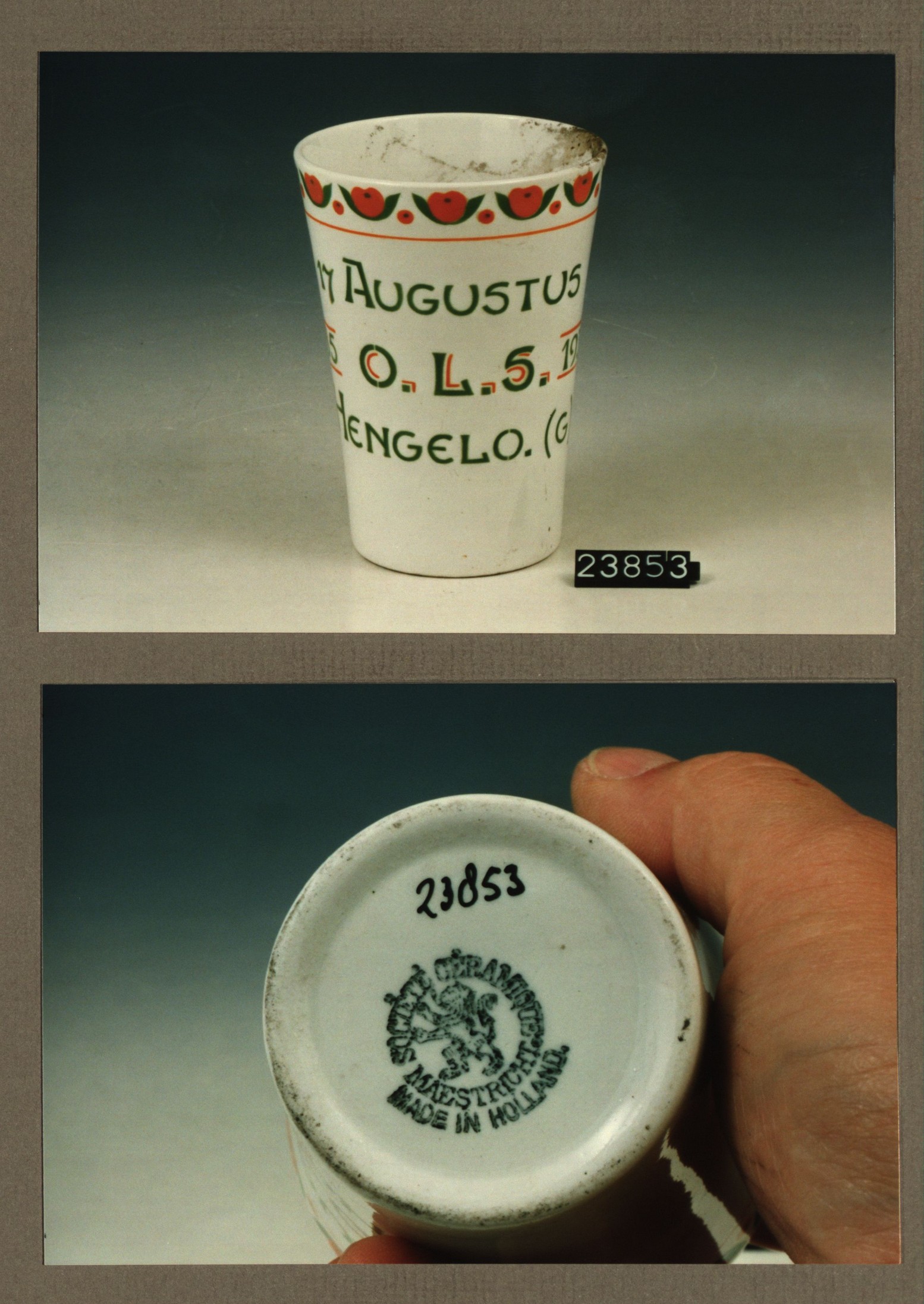 Beker met opschrift, model Effen met decor O.L.S. He...