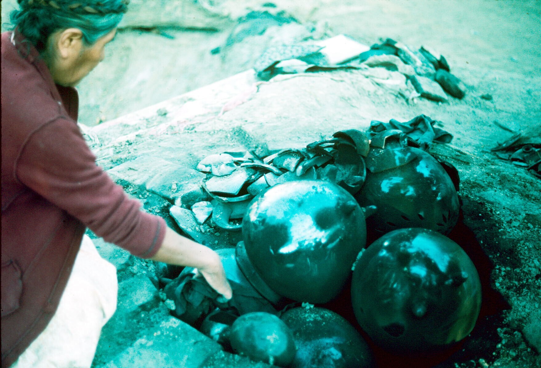 pottenbakster Juana Domínguez, met verwanten, op erf...