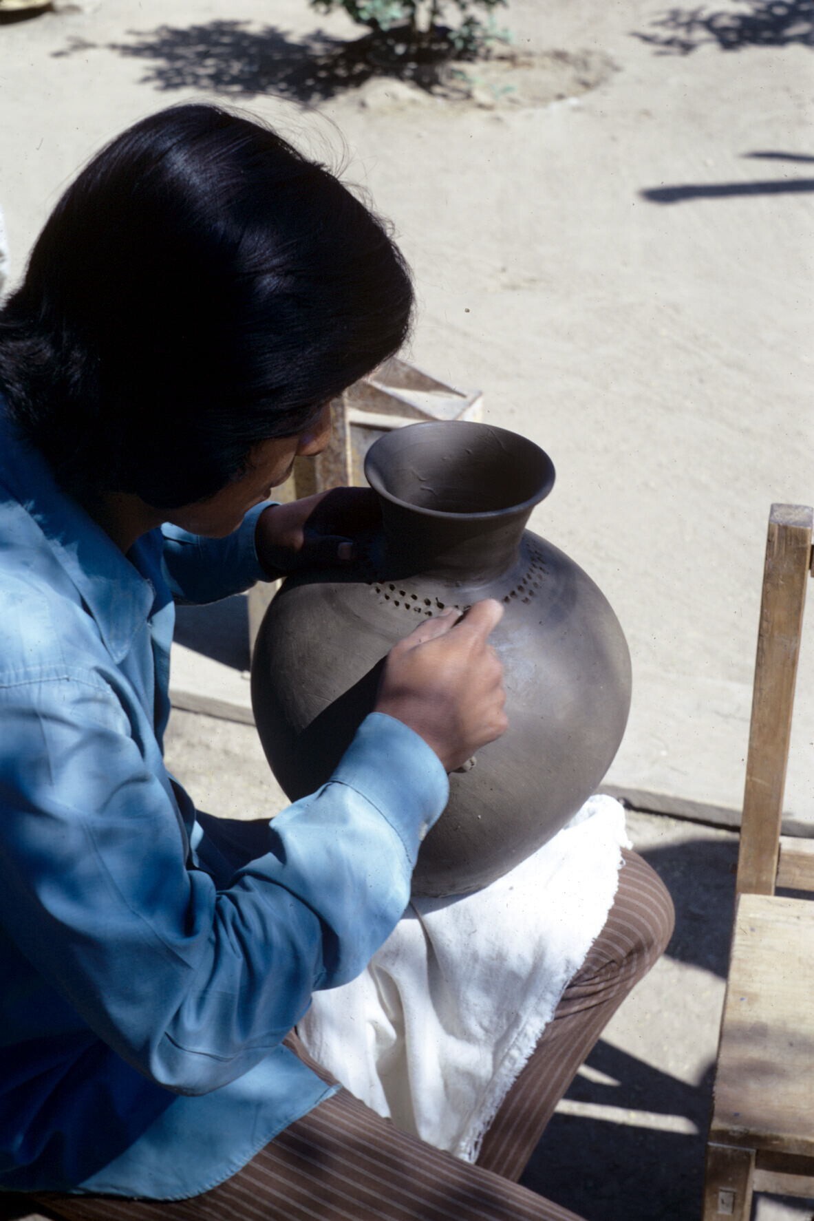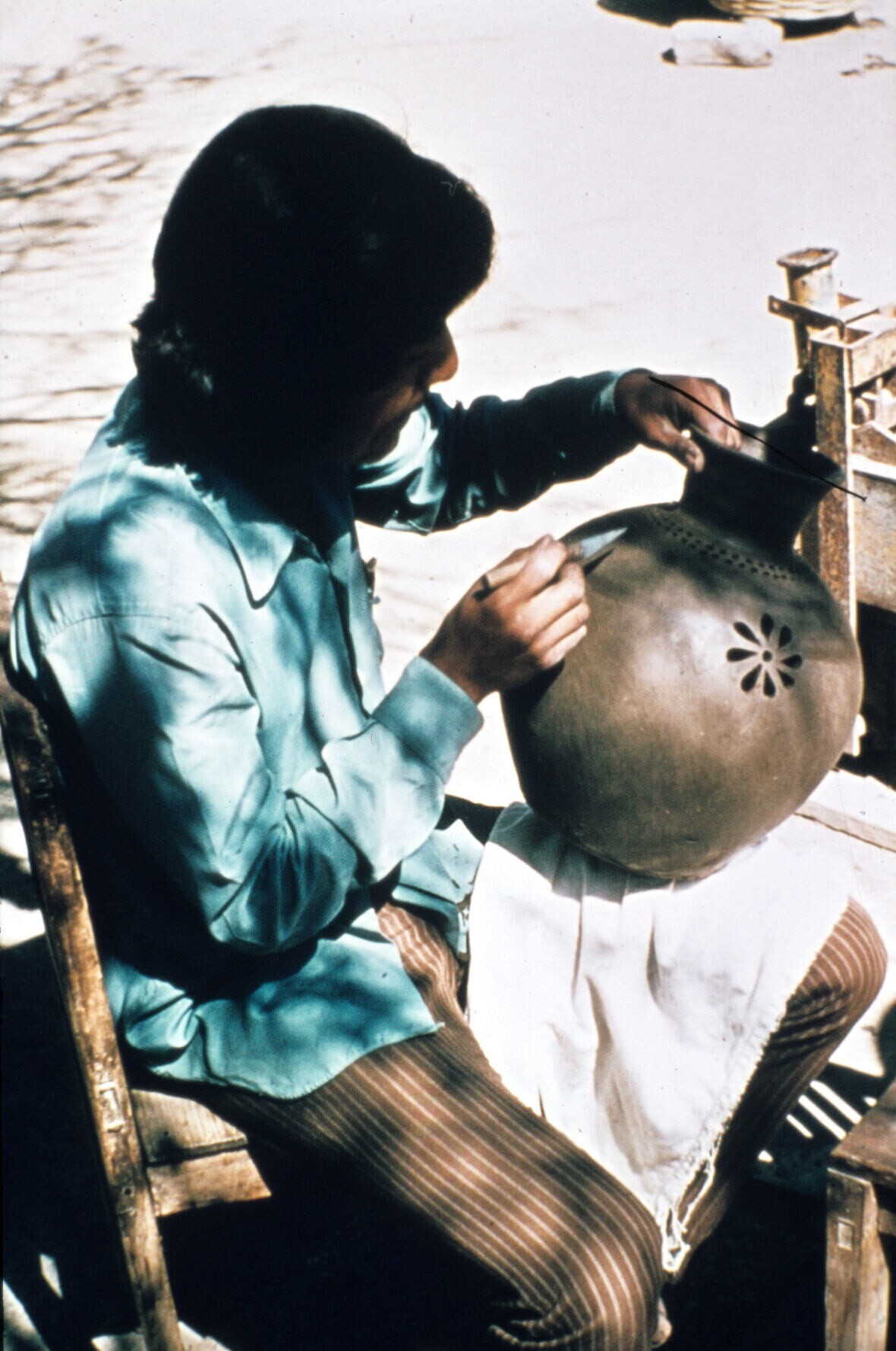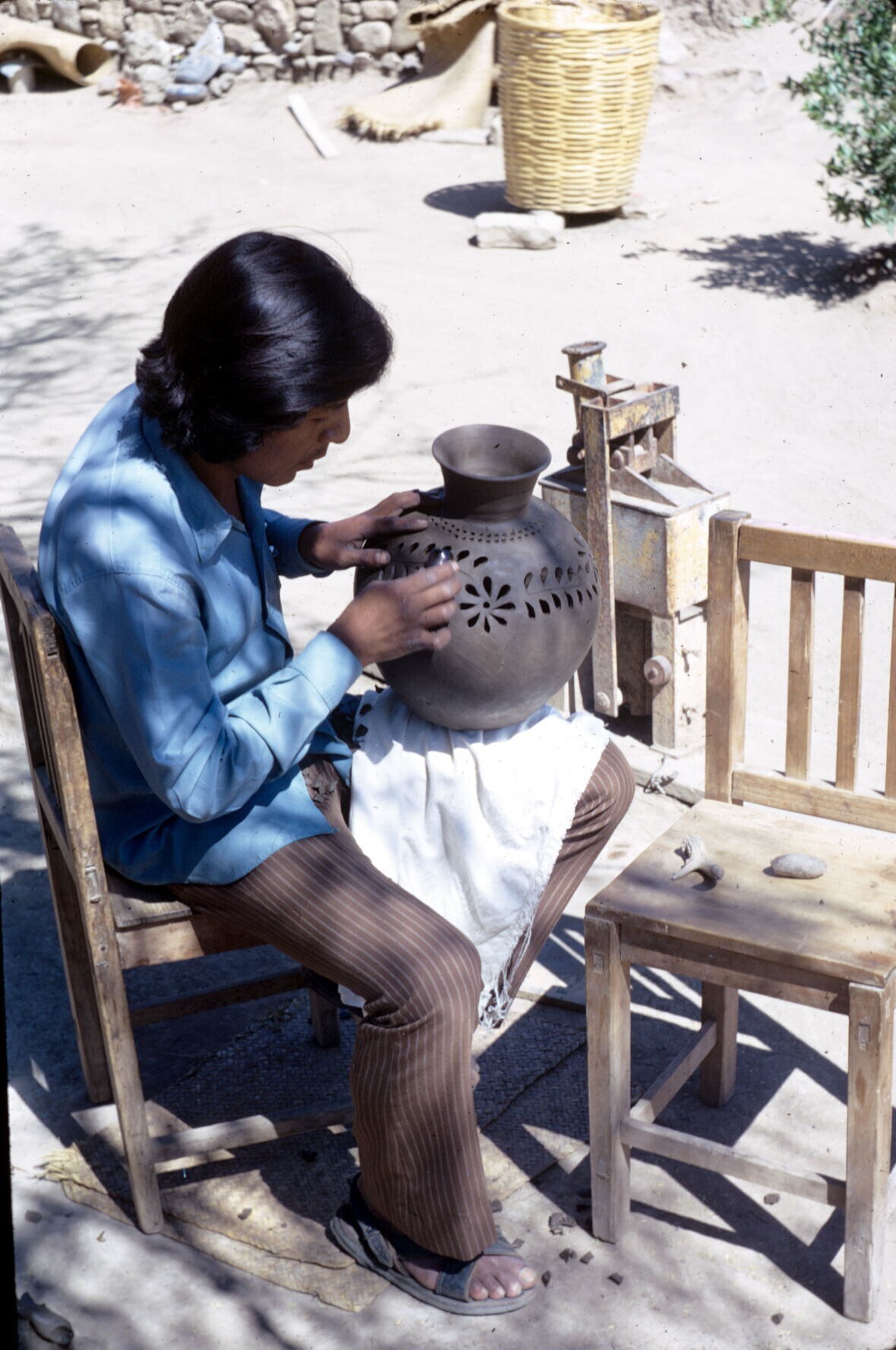 pottenbakster Juana Domínguez demonstreert gebruik c...