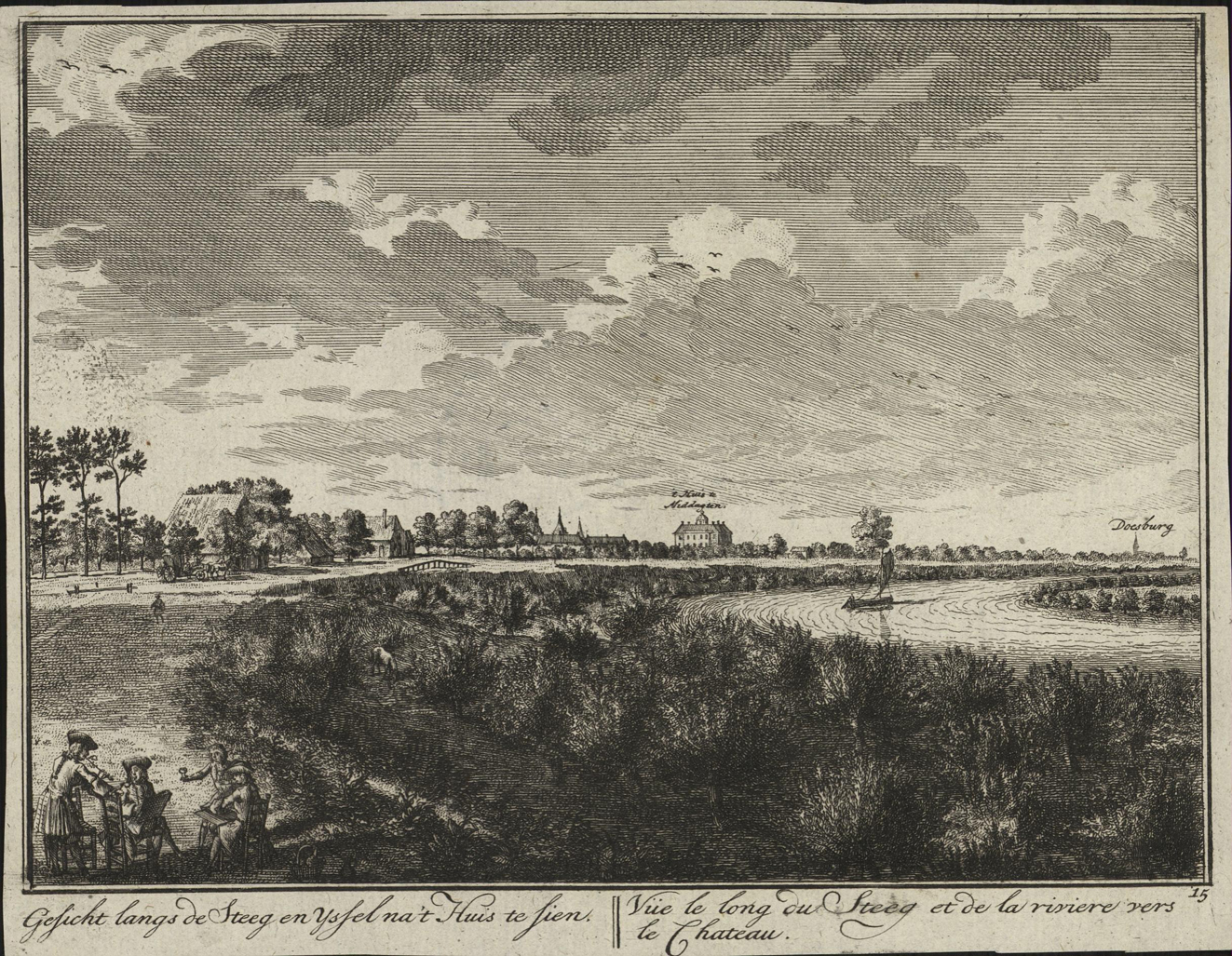 Vuë du Vaeleweerdt au de la de l'Yssel vers le chateau