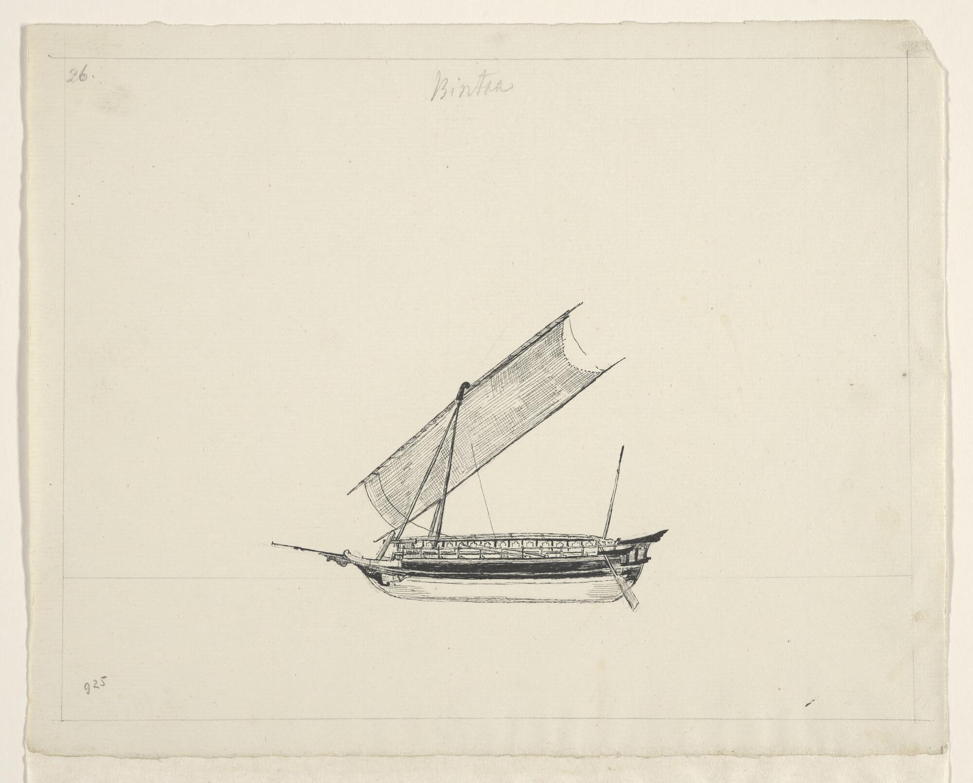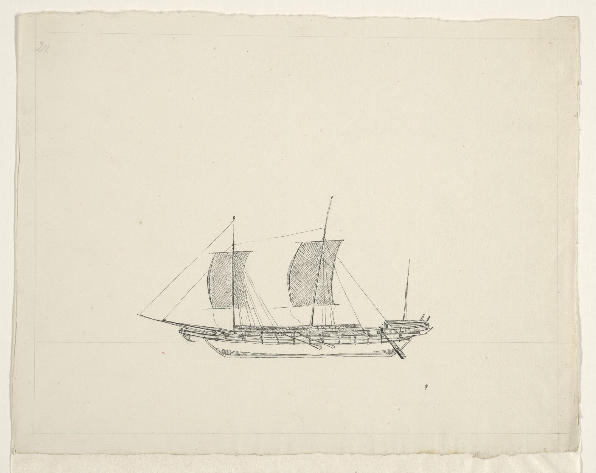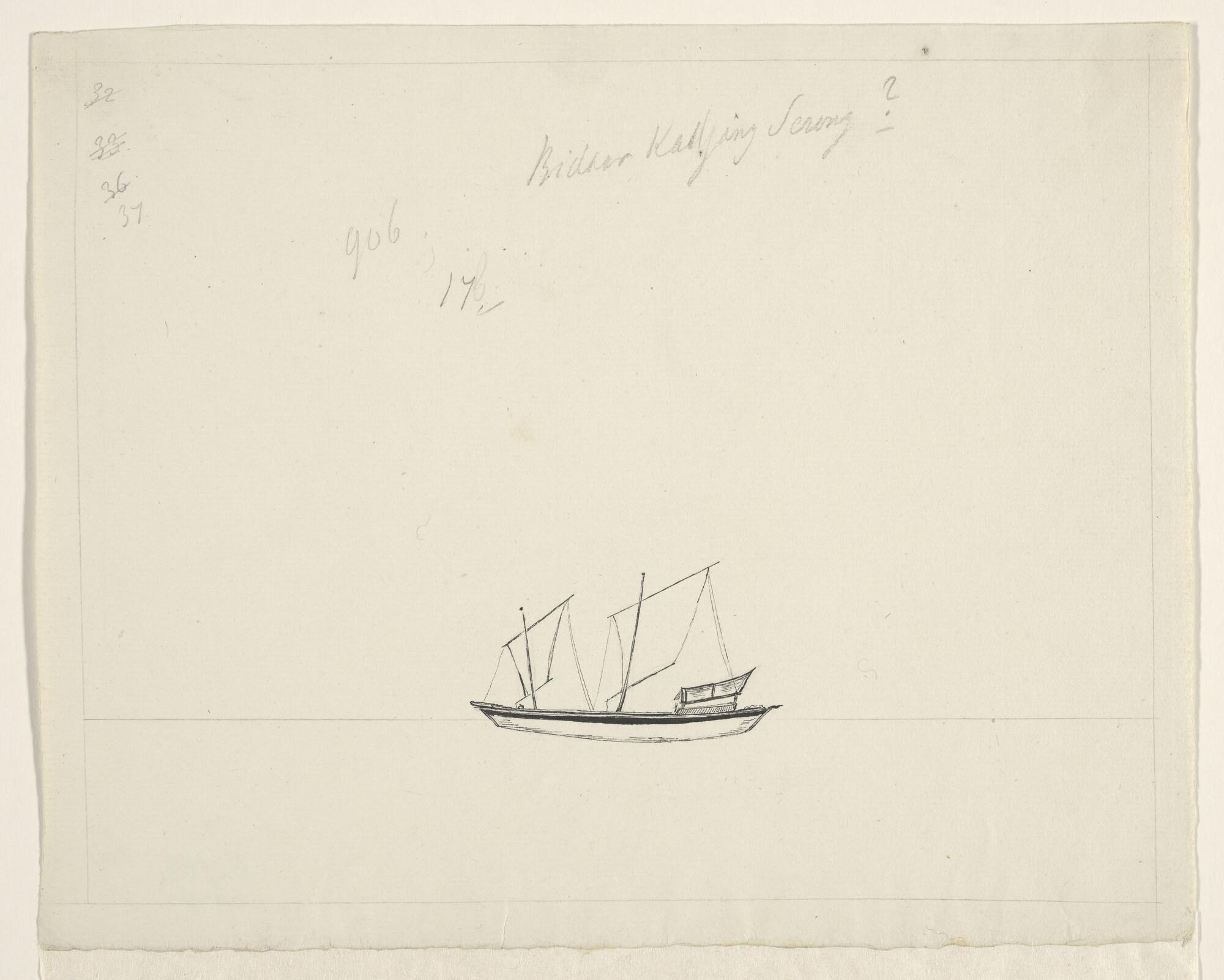 Tekening van een inlands vaartuig uit de Oostindisch...
