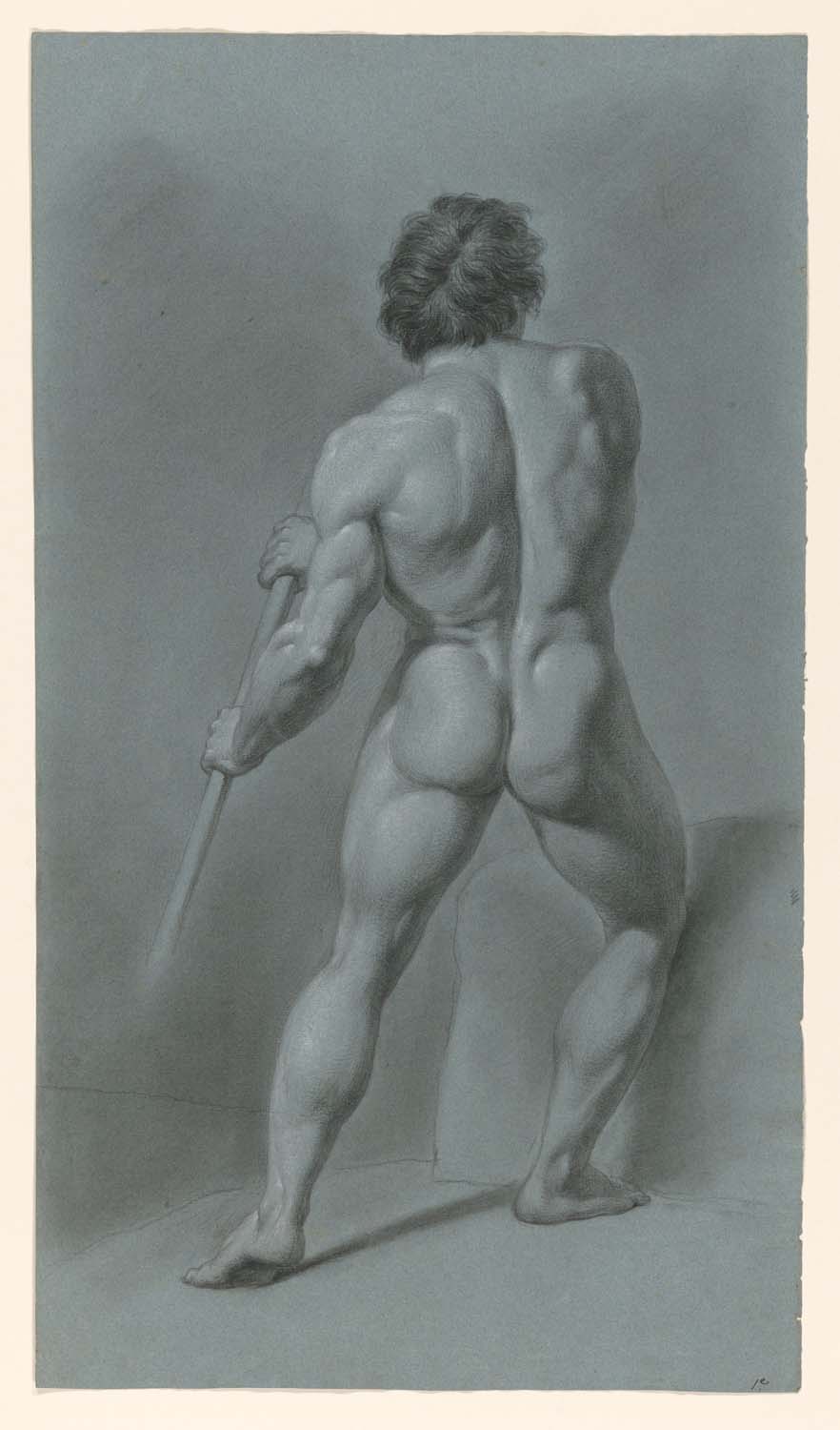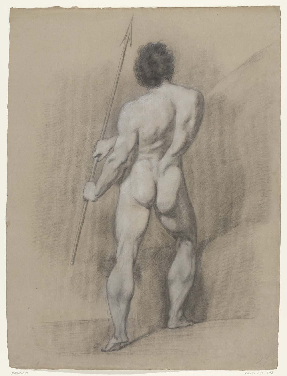 Staand mannelijk naakt met speer, van achteren