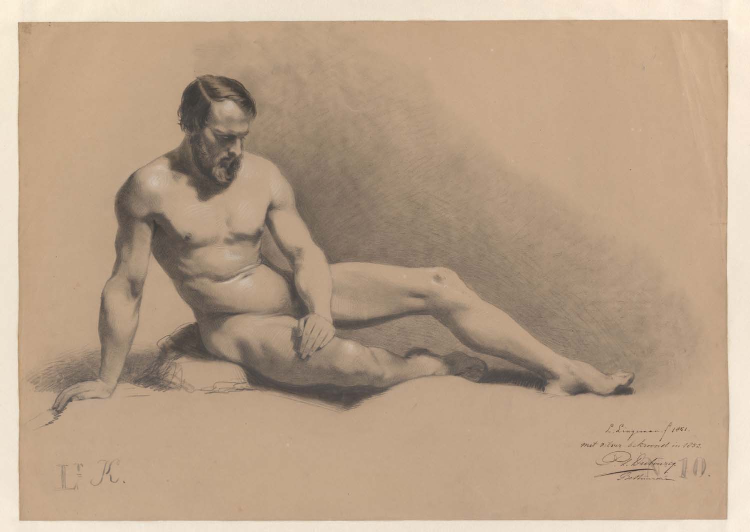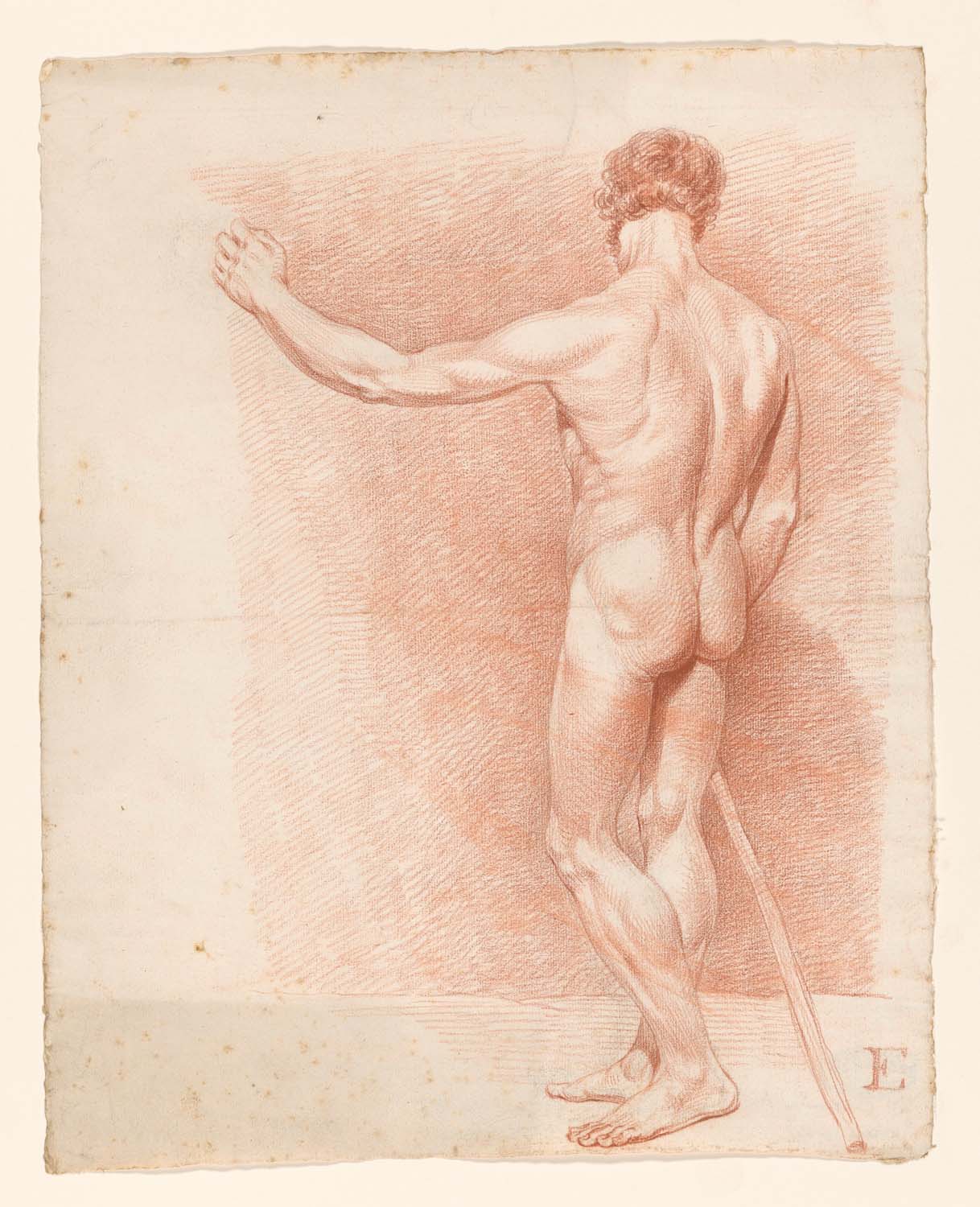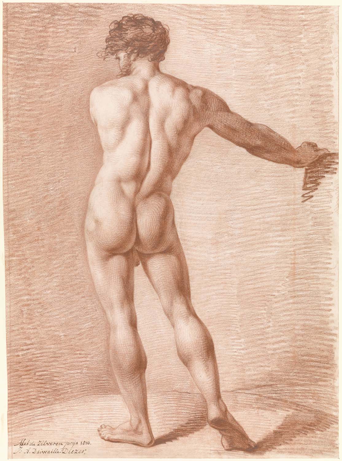 Zittend mannelijk naakt, op de rug gezien
