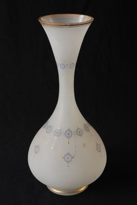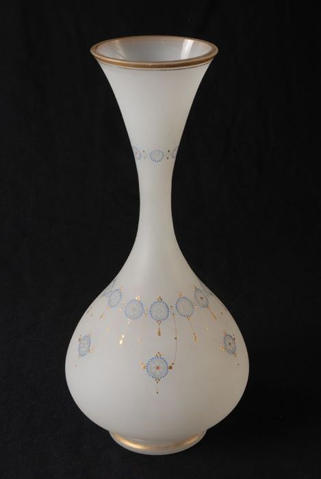 Stel zwarte glazen vazen, veelkleurig beschilderd