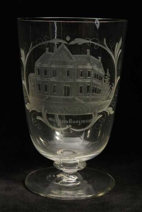 Beker gegraveerd met Schielandshuis en "Museum Boojm...