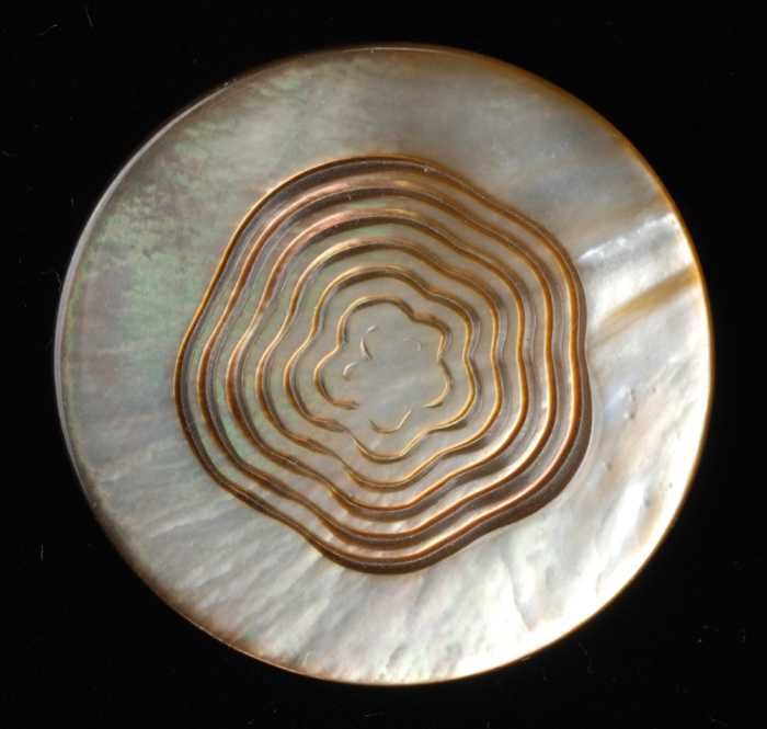 Ornamenttegel, rozet waarboven oranjeappels en gouds...