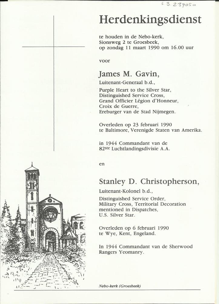 Programma Herdenkingsdienst voor James M. Gavin en S...