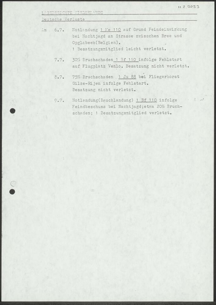 Rapport Lagebericht Niederlande Deutsche Verluste.