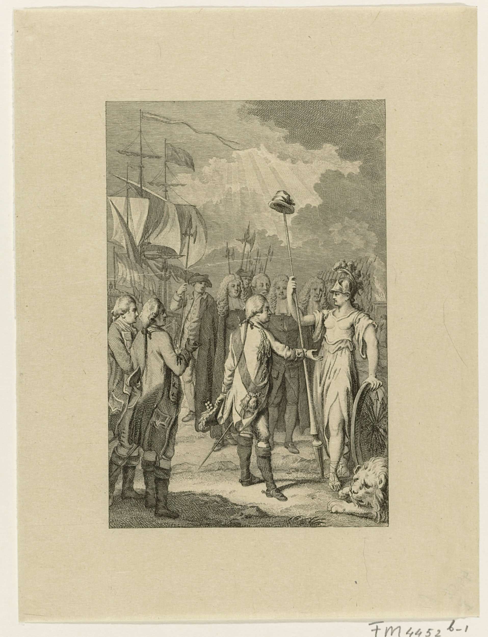 Willem V biedt de Nederlandse Maagd zijn diensten aa...