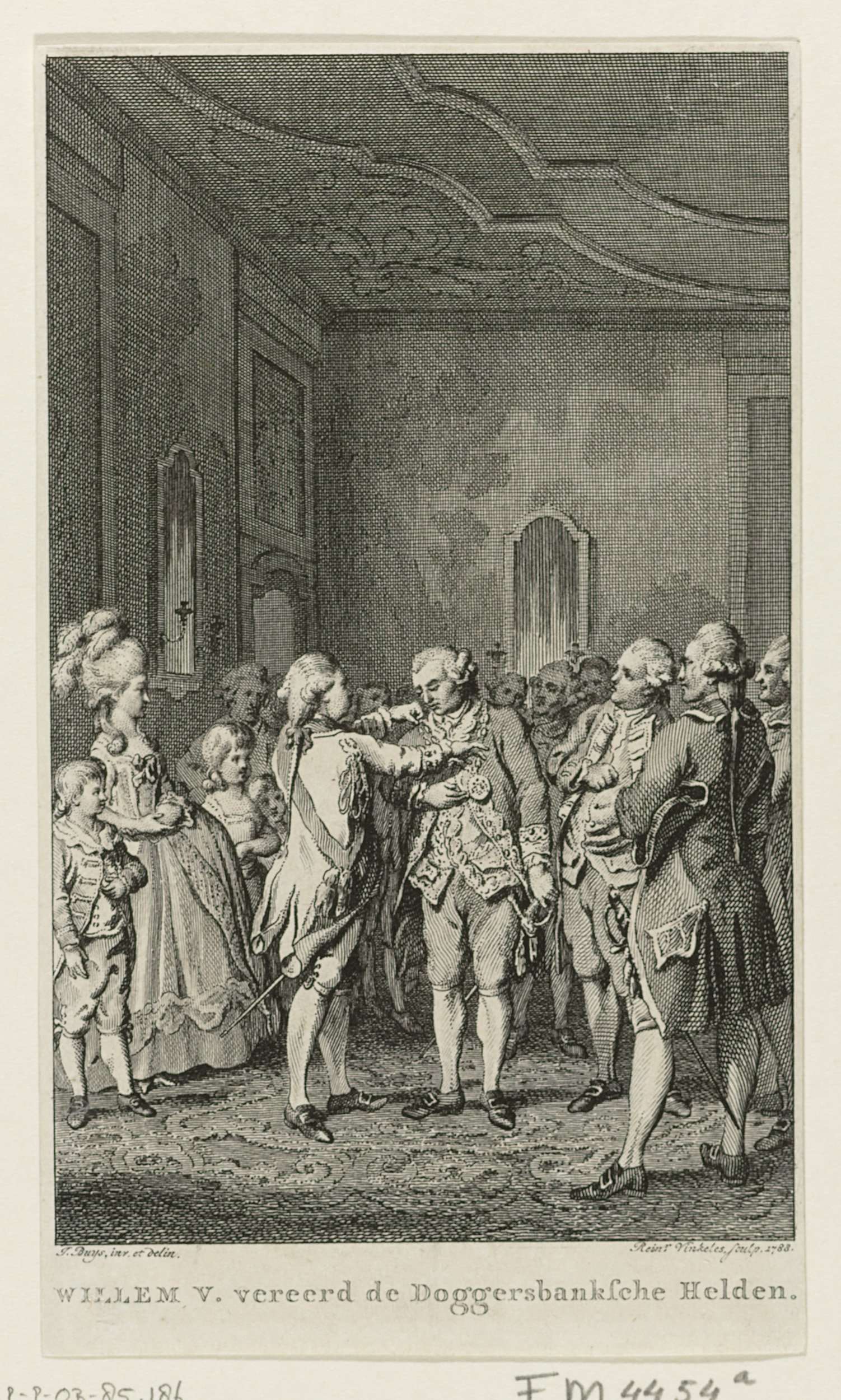 Willem V vereert de helden van de zeeslag bij Dogger...