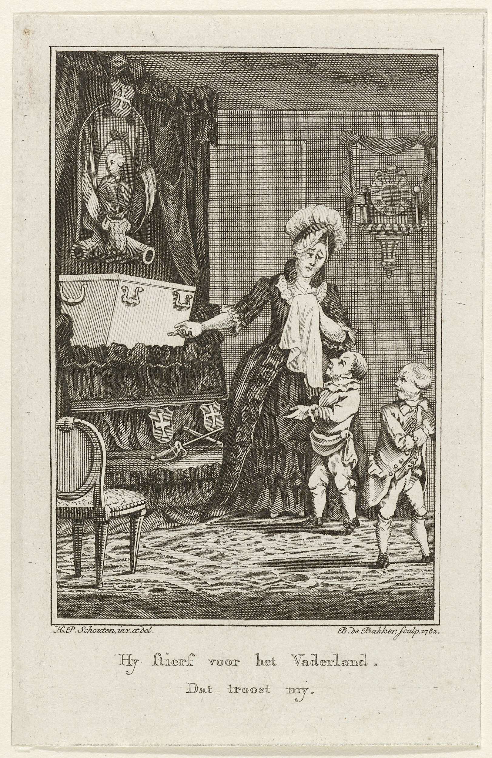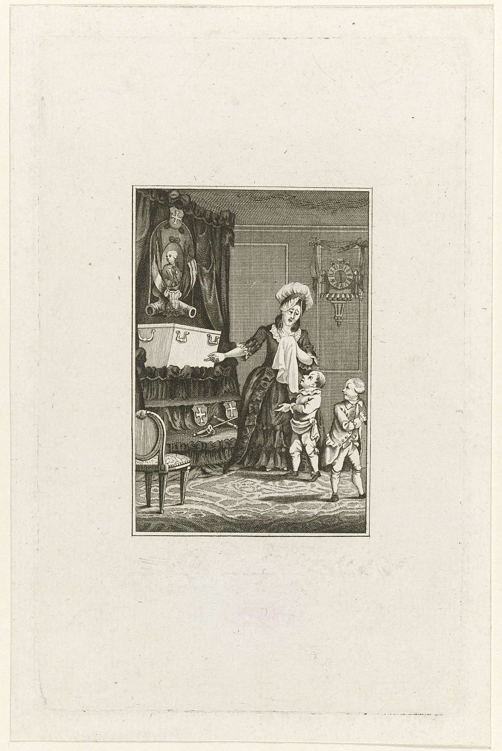 Weduwe Bentinck met haar kinderen bij de lijkbaar va...