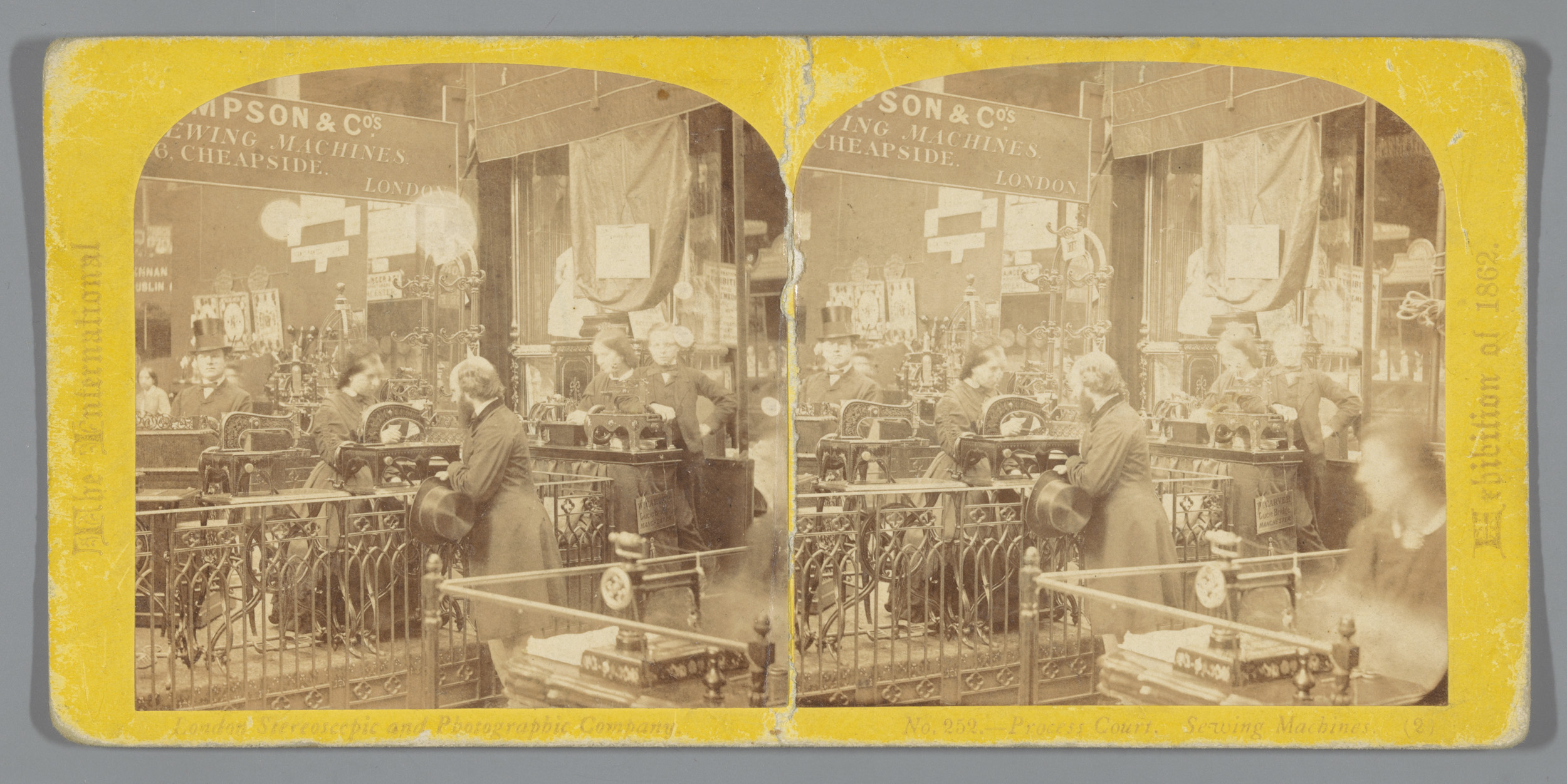 Afdeling met naaimachines op de Wereldtentoonstellin...