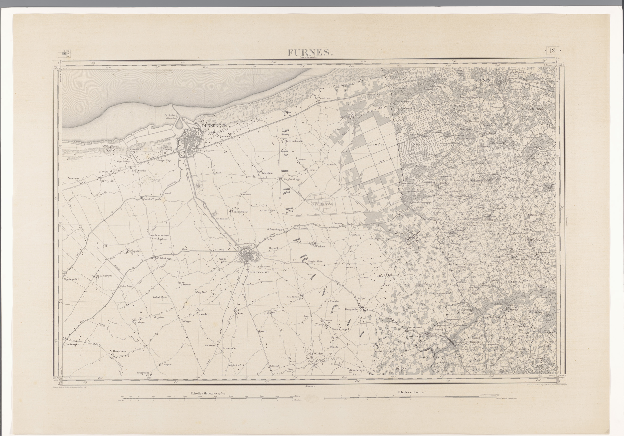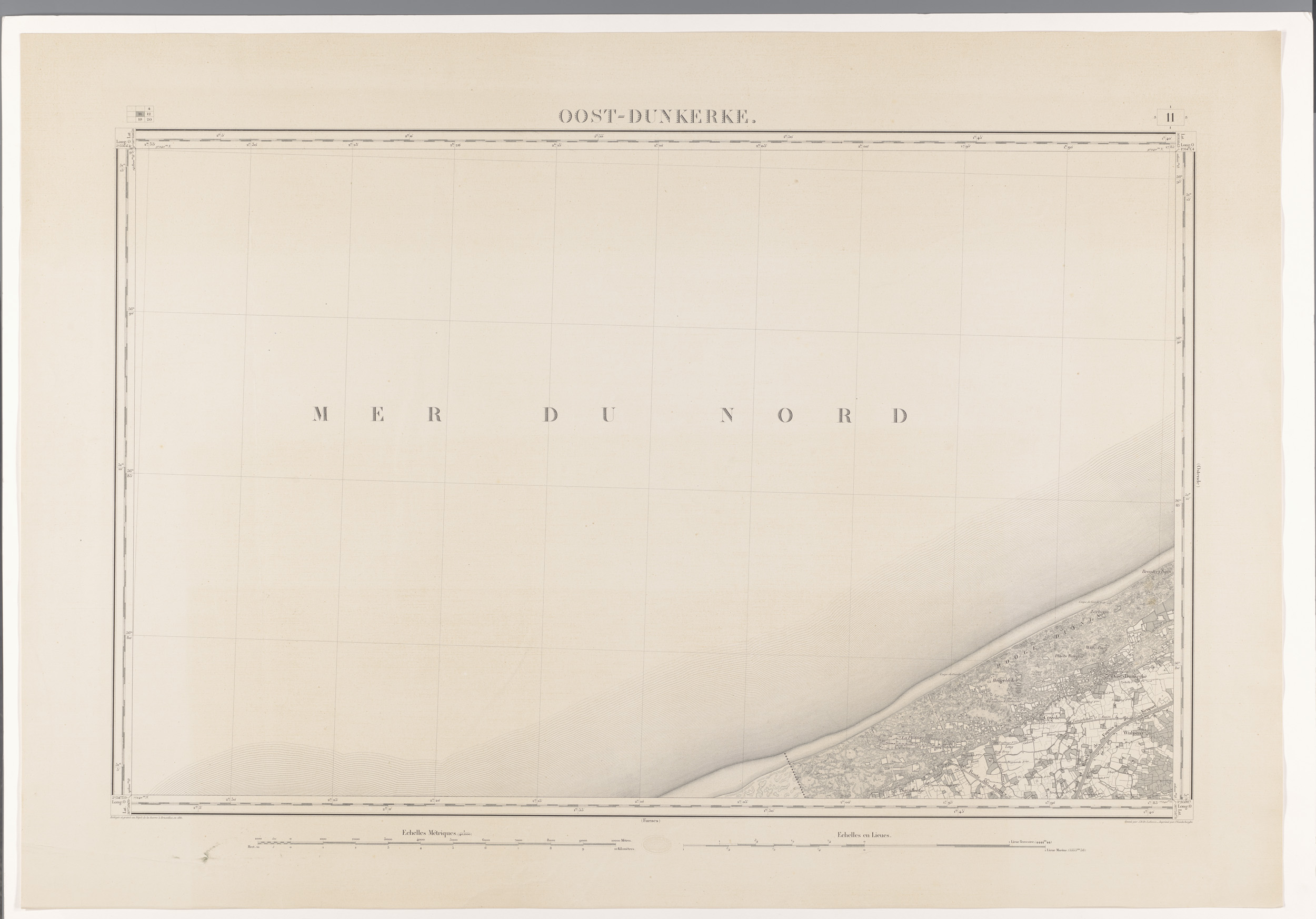 Kaart van de Noordzee voor de kust van Duinkerke