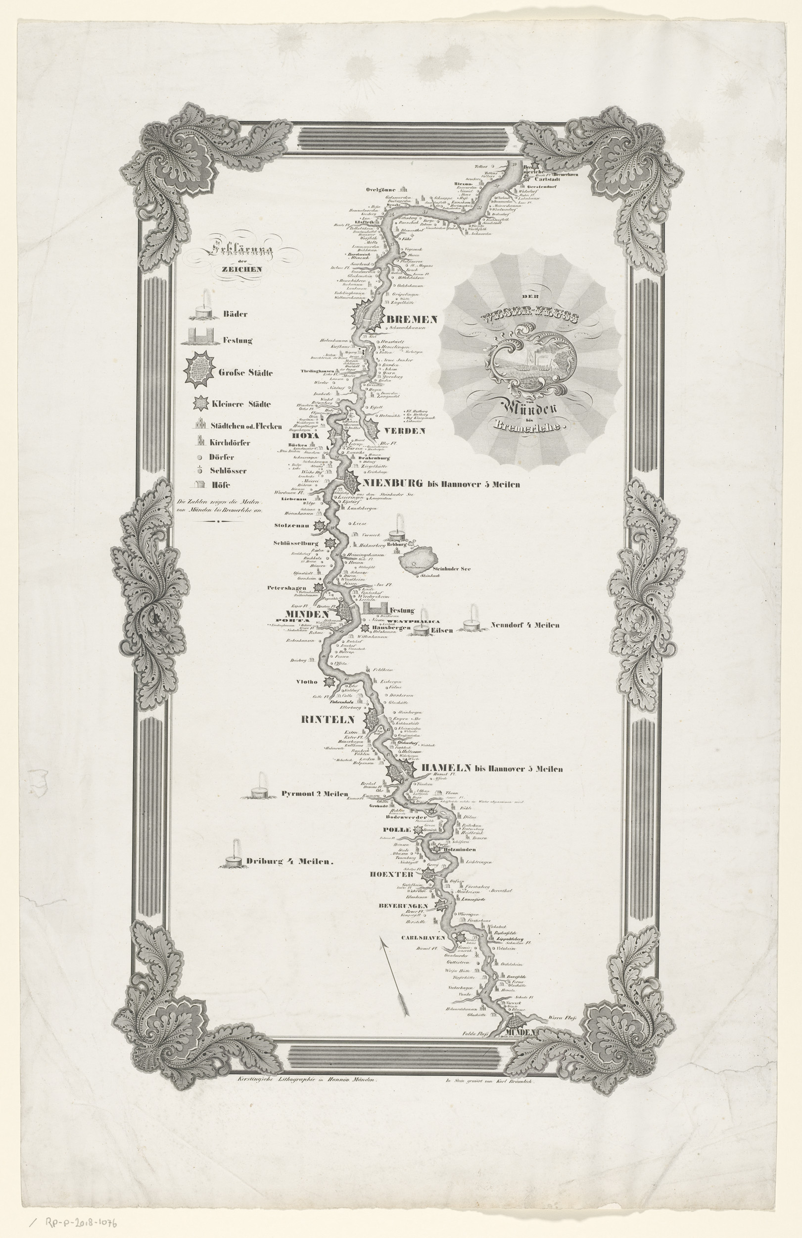 Kaart van de stroom van de Wezer, van Hannoversch-Mü...