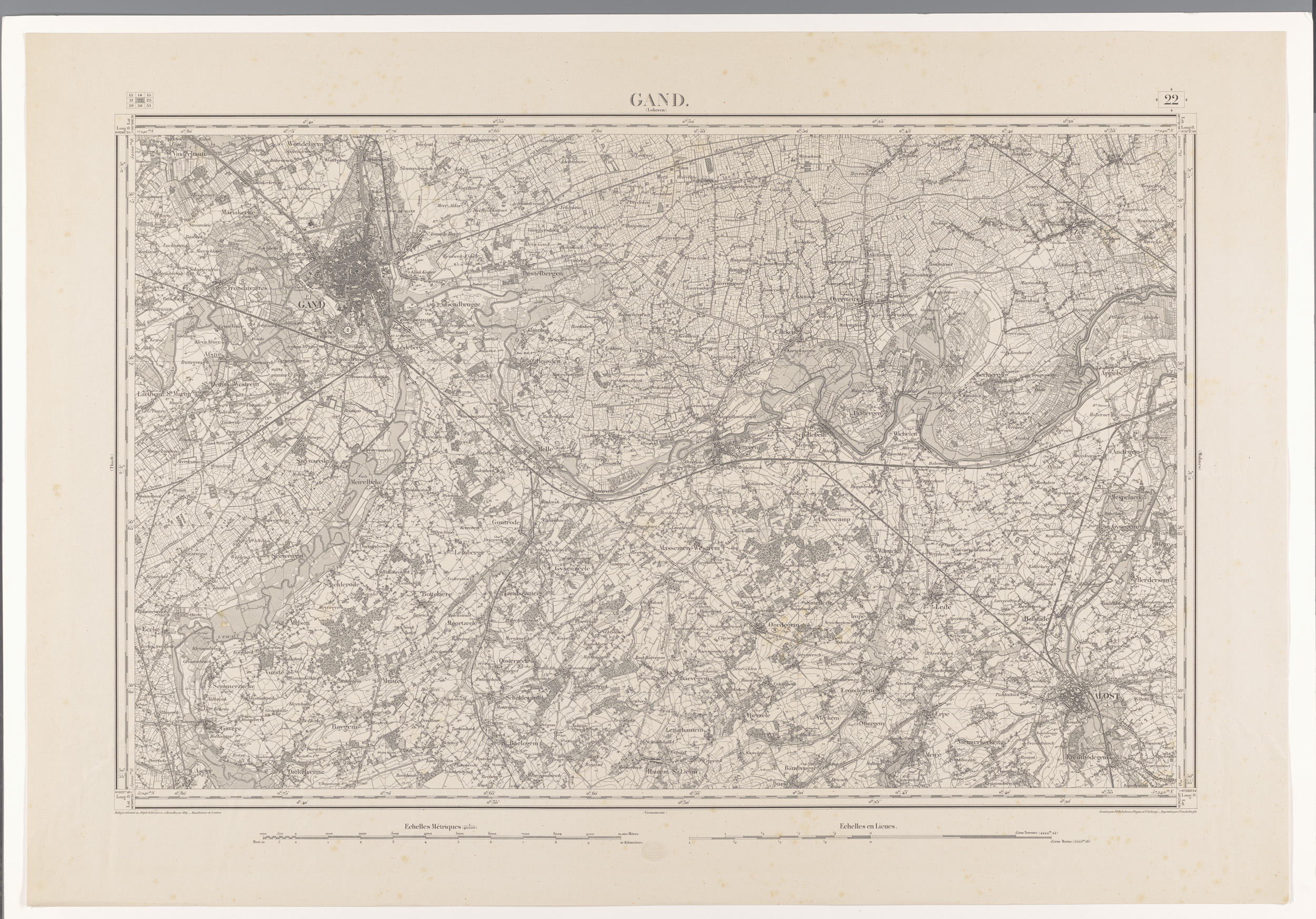Kaart van het gebied ten zuidoosten van Gent