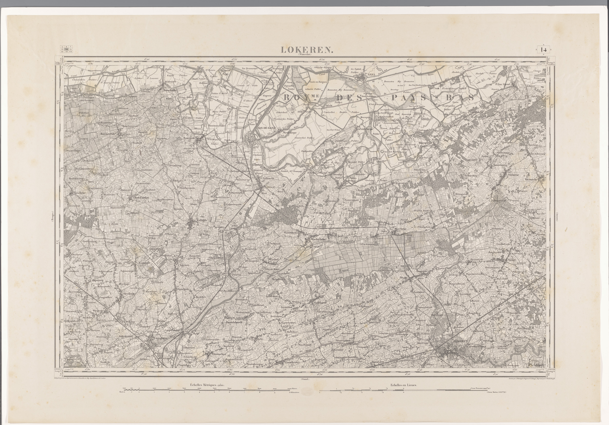 Kaart van het gebied ten noordwesten van Lokeren