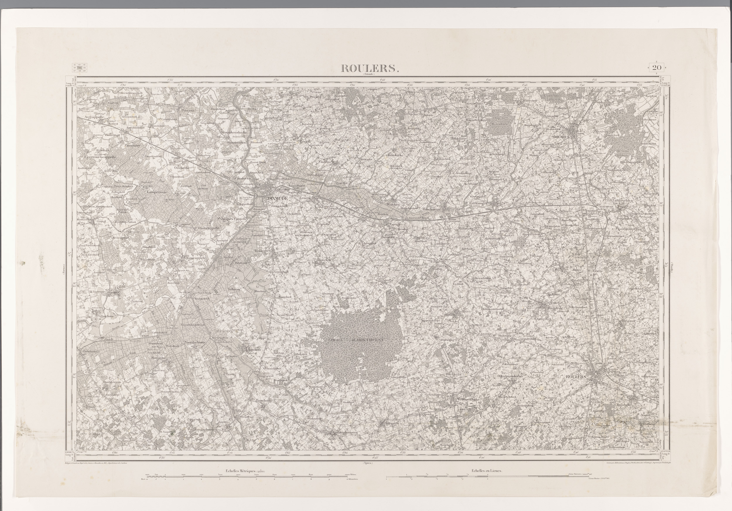 Kaart van het gebied ten noordwesten van Roeselare