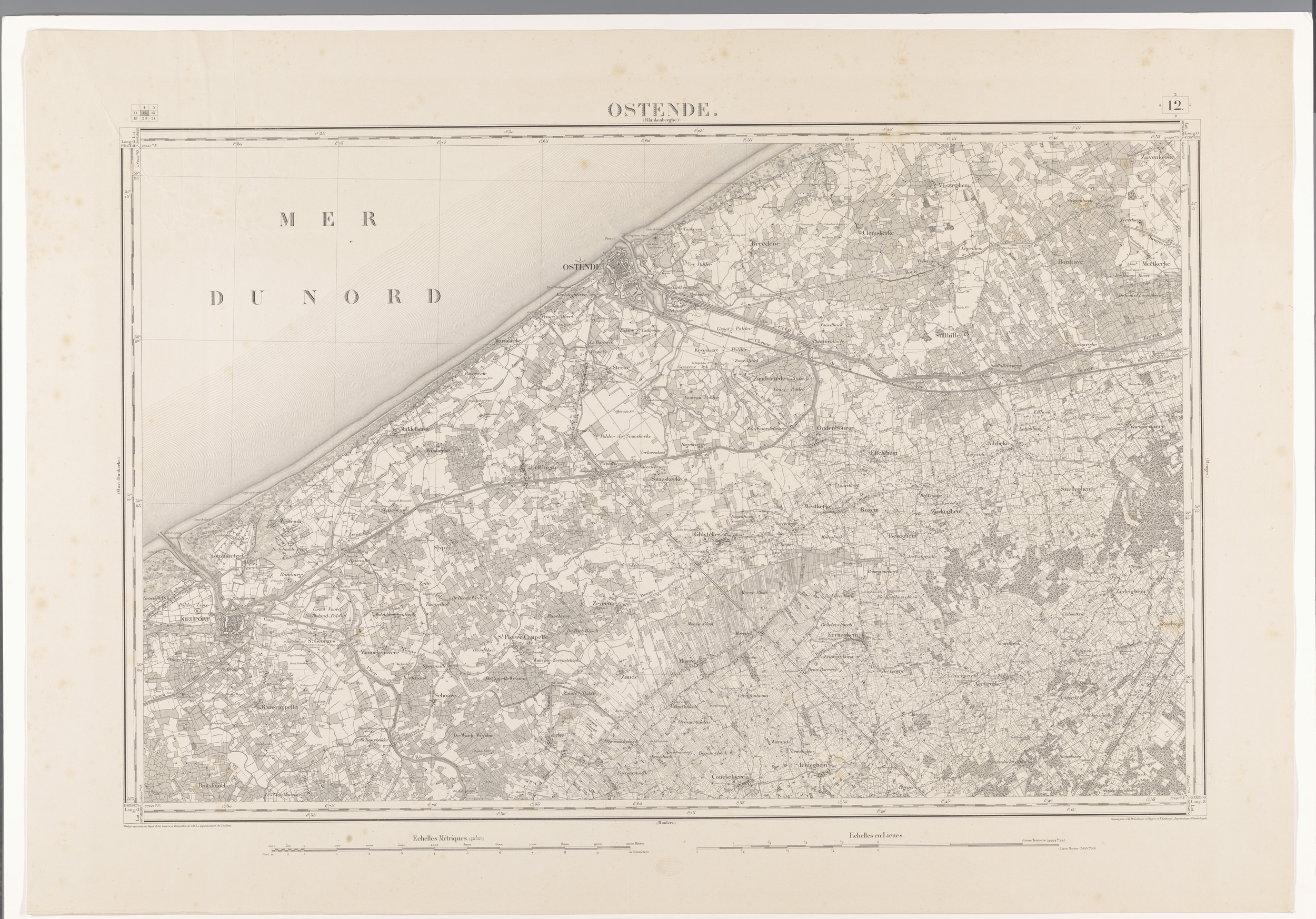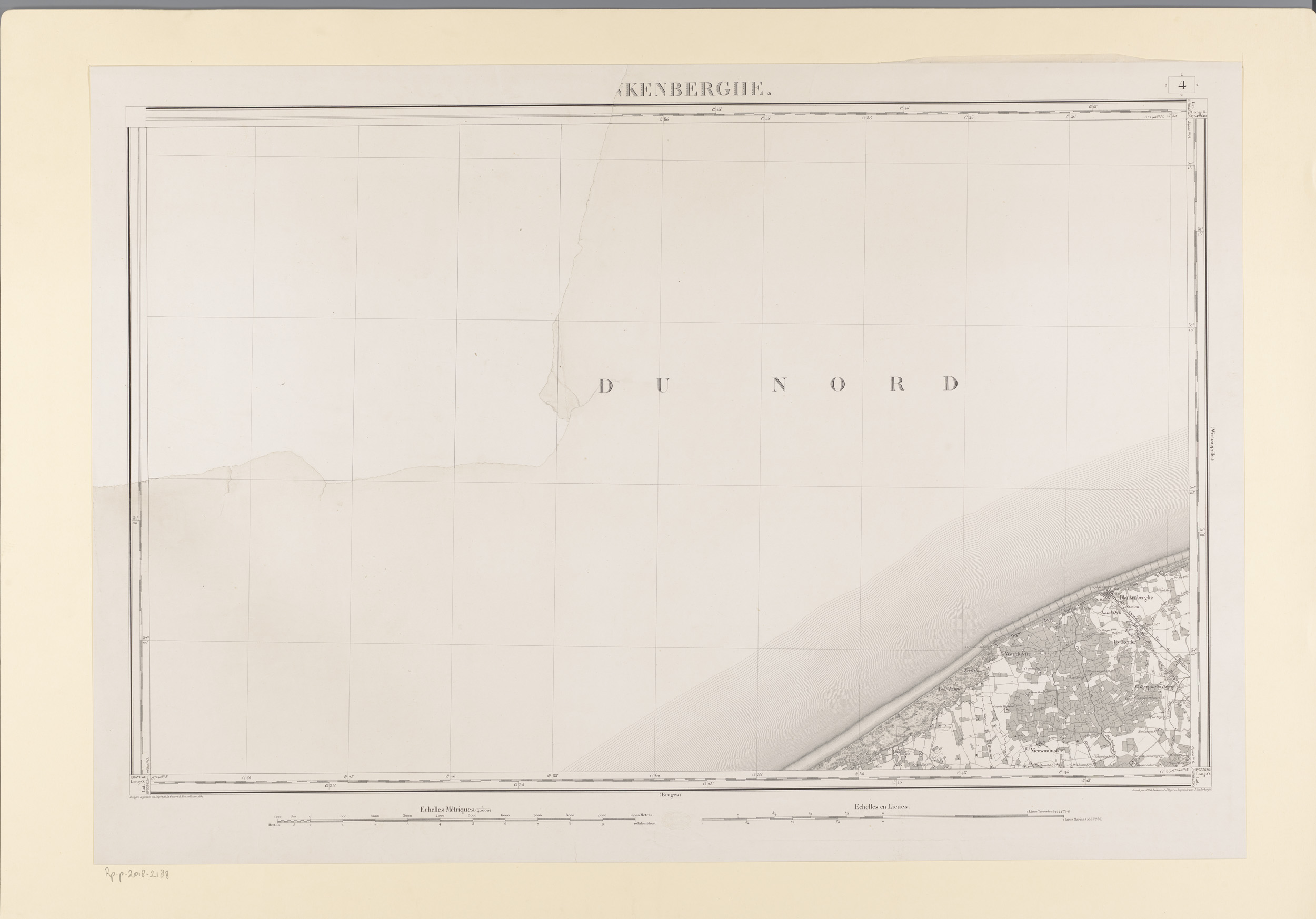 Kaart van de Noordzee voor de kust van Blankenberge