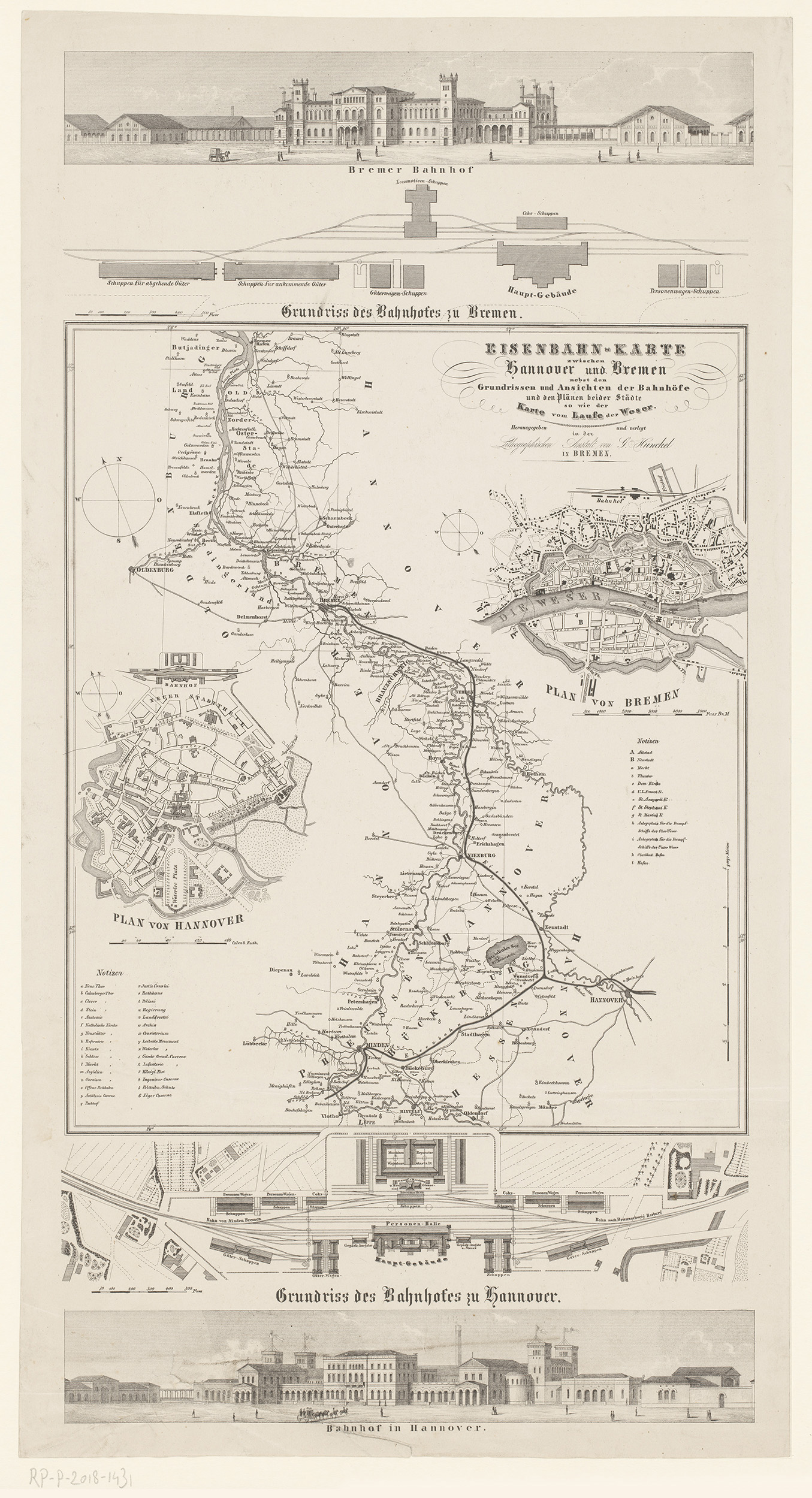 Kaart van de spoorweg tussen Hannover en Bremen