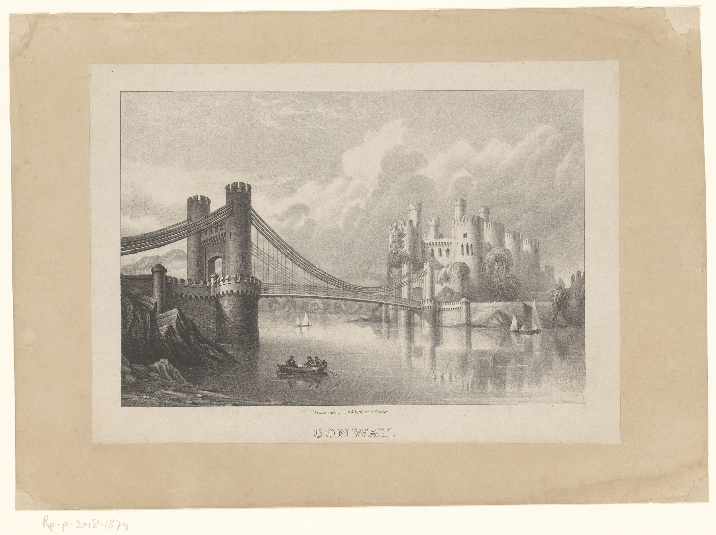 Gezicht op Conwy Castle en de Conwy Suspension Bridge