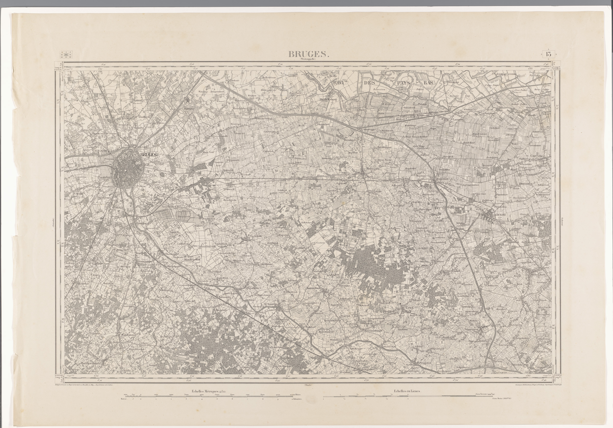 Kaart van het gebied ten oosten van Brugge