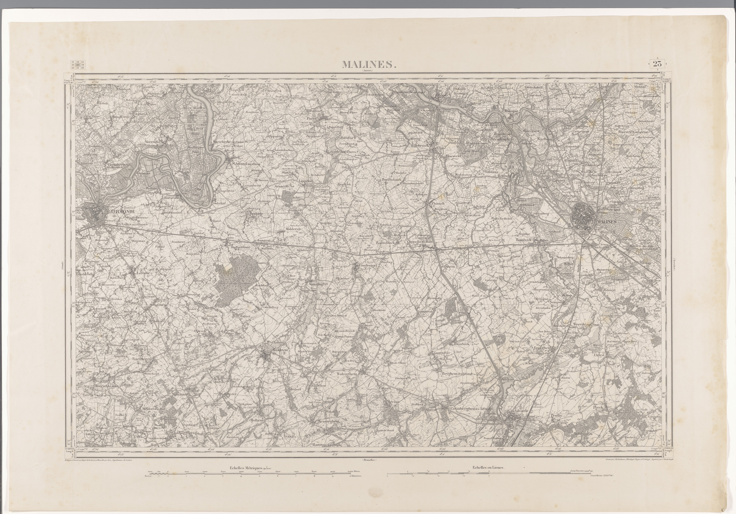 Kaart van het gebied ten westen van Mechelen