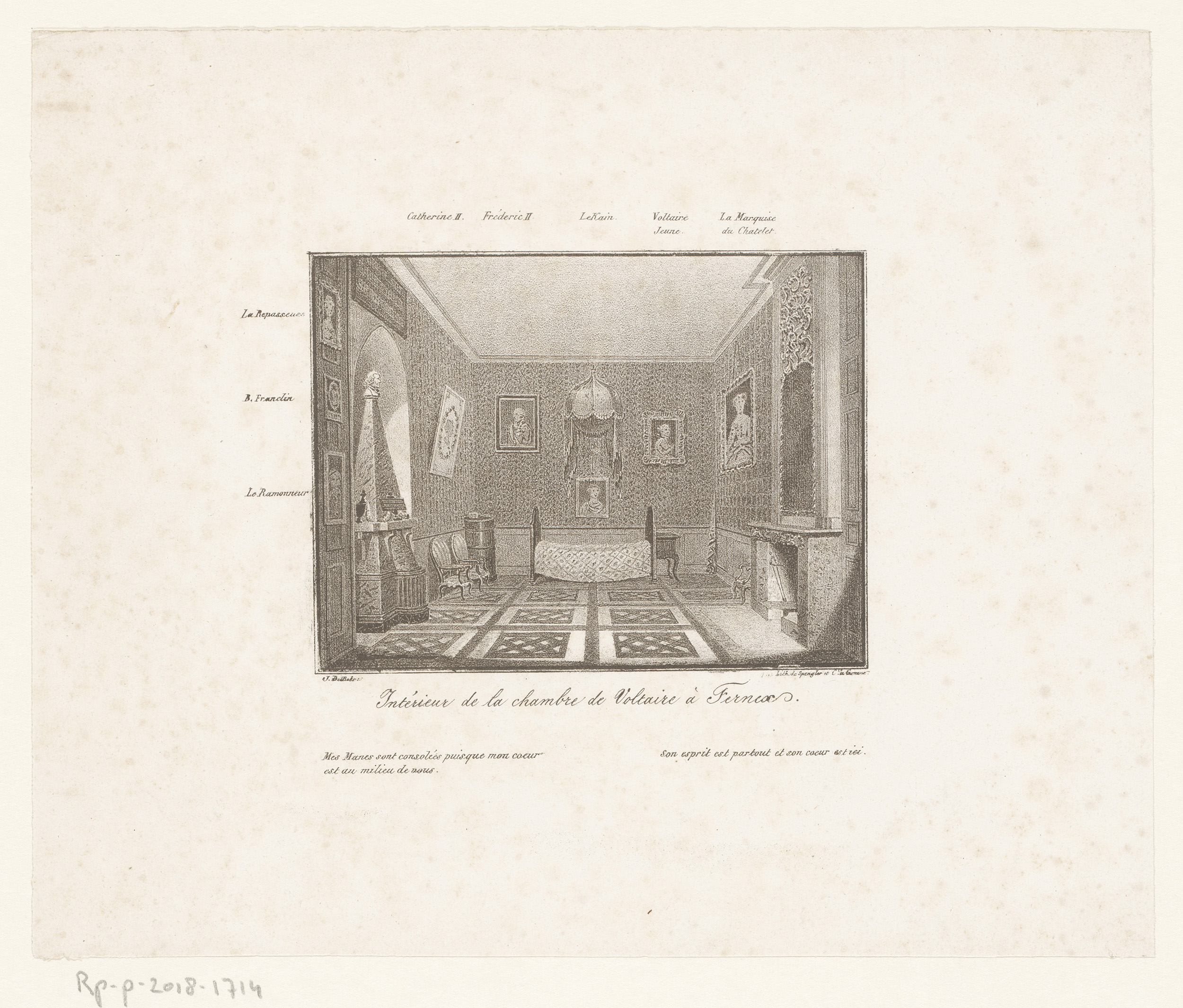 Interieur van de kamer van Voltaire te Ferney