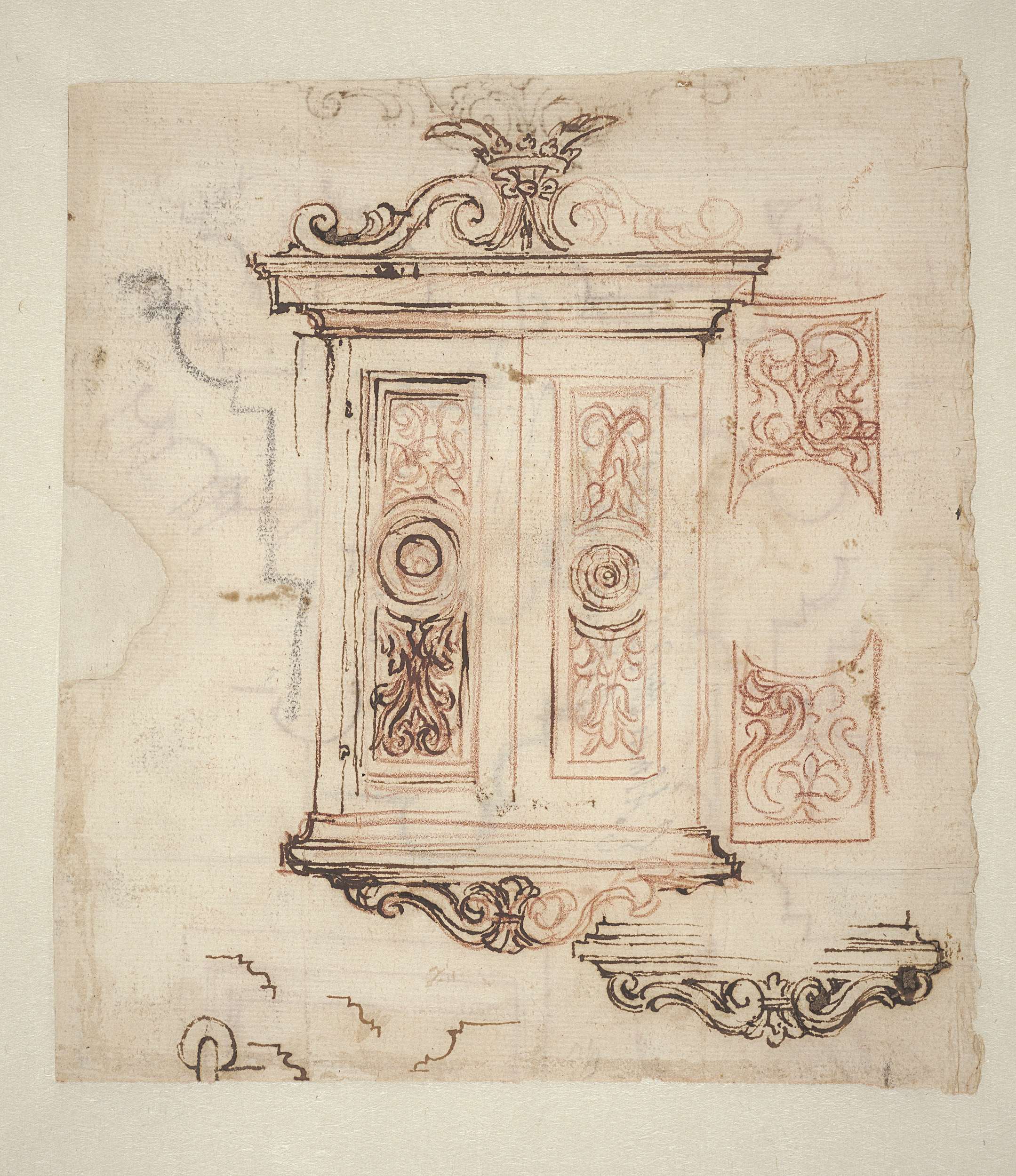 Ontwerp voor een door een zwaan bekroond oor van een...