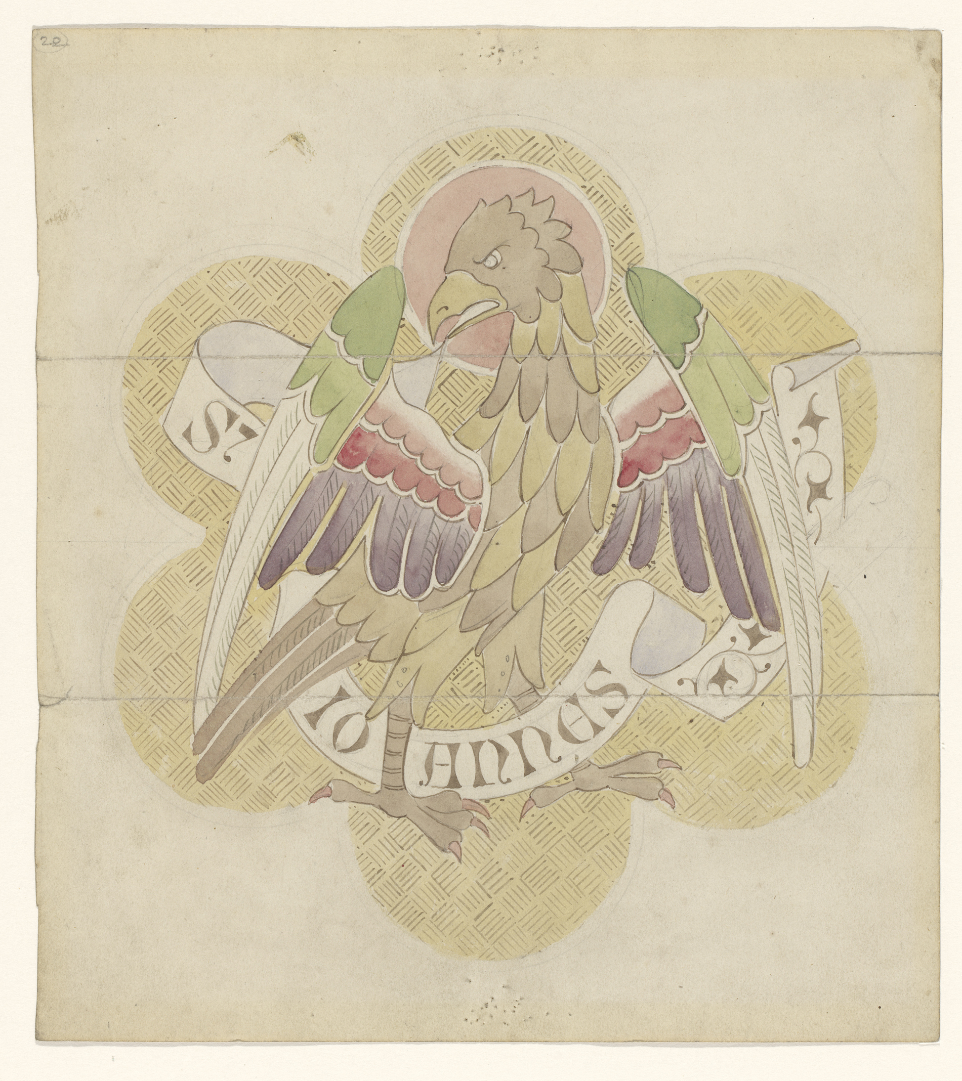 Ontwerp voor borduurwerk met de evangelist Johannes