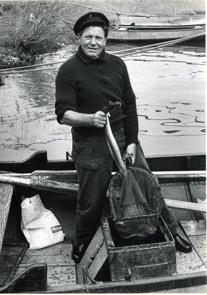 Zwart-wit foto van palingvisser Adri van Sonsbeek te...