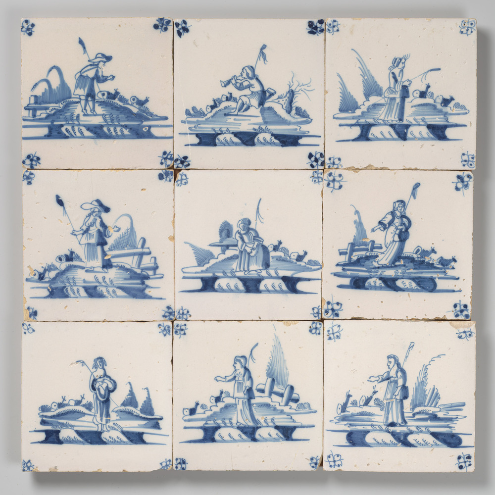 Aardewerk tegel met tinglazuur, voorstellende twee v...