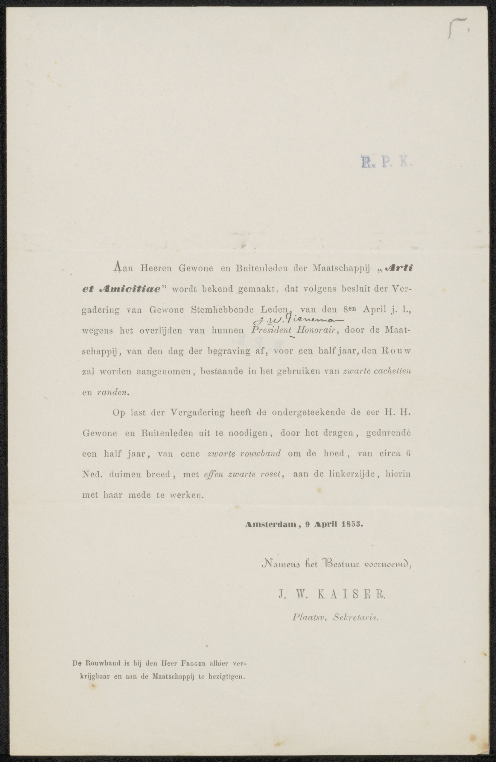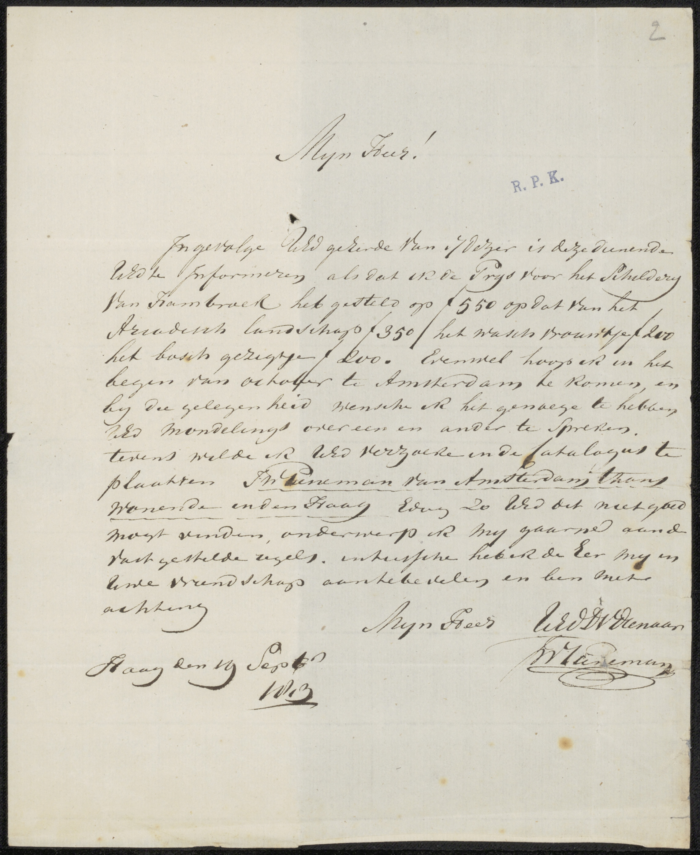 Brief aan Willem Nicolaas Frederik Sibmacher Zijnen