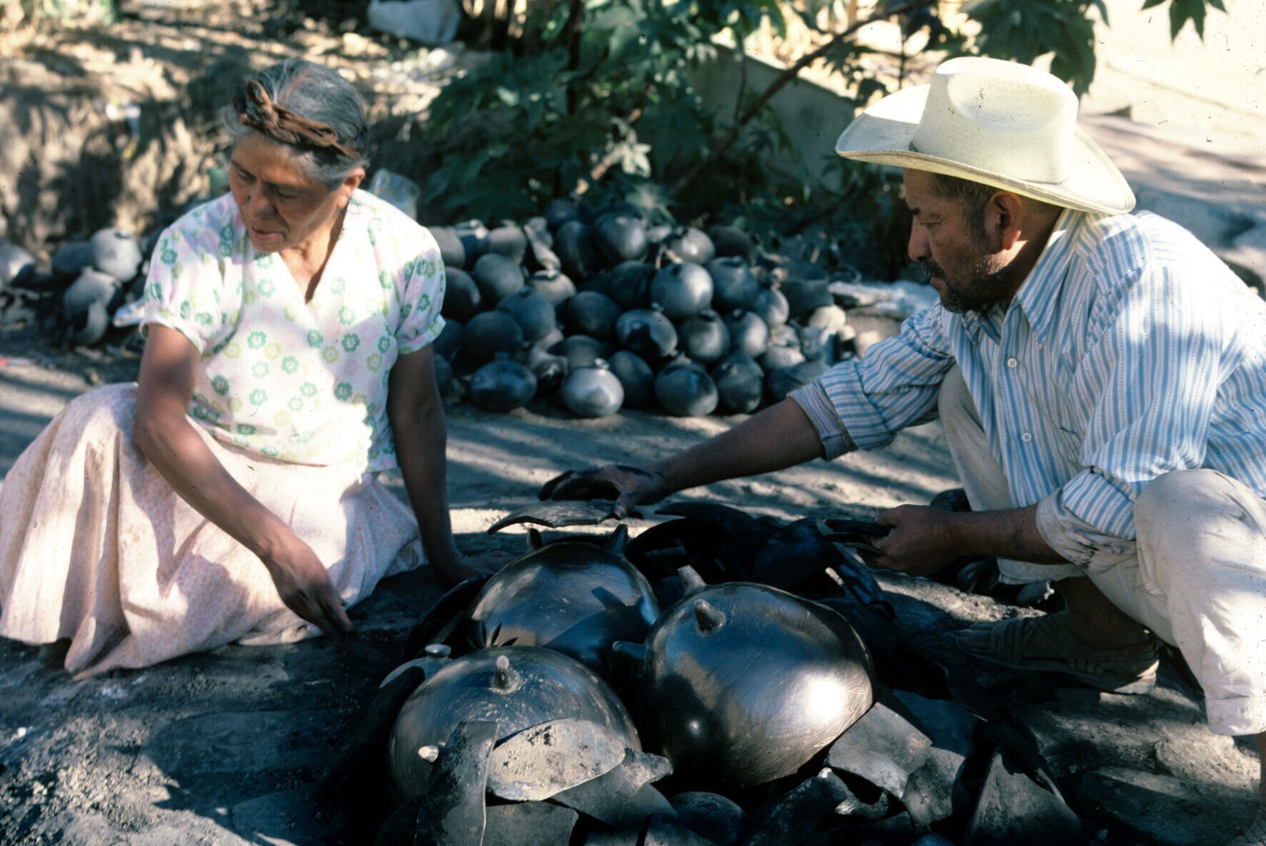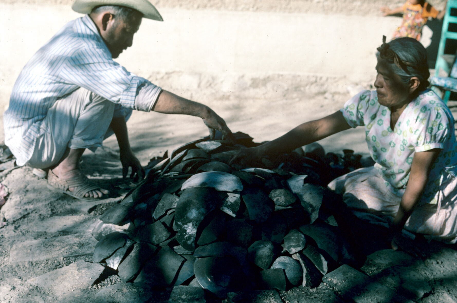 man van pottenbakster Juana Domínguez, vóór het bakk...