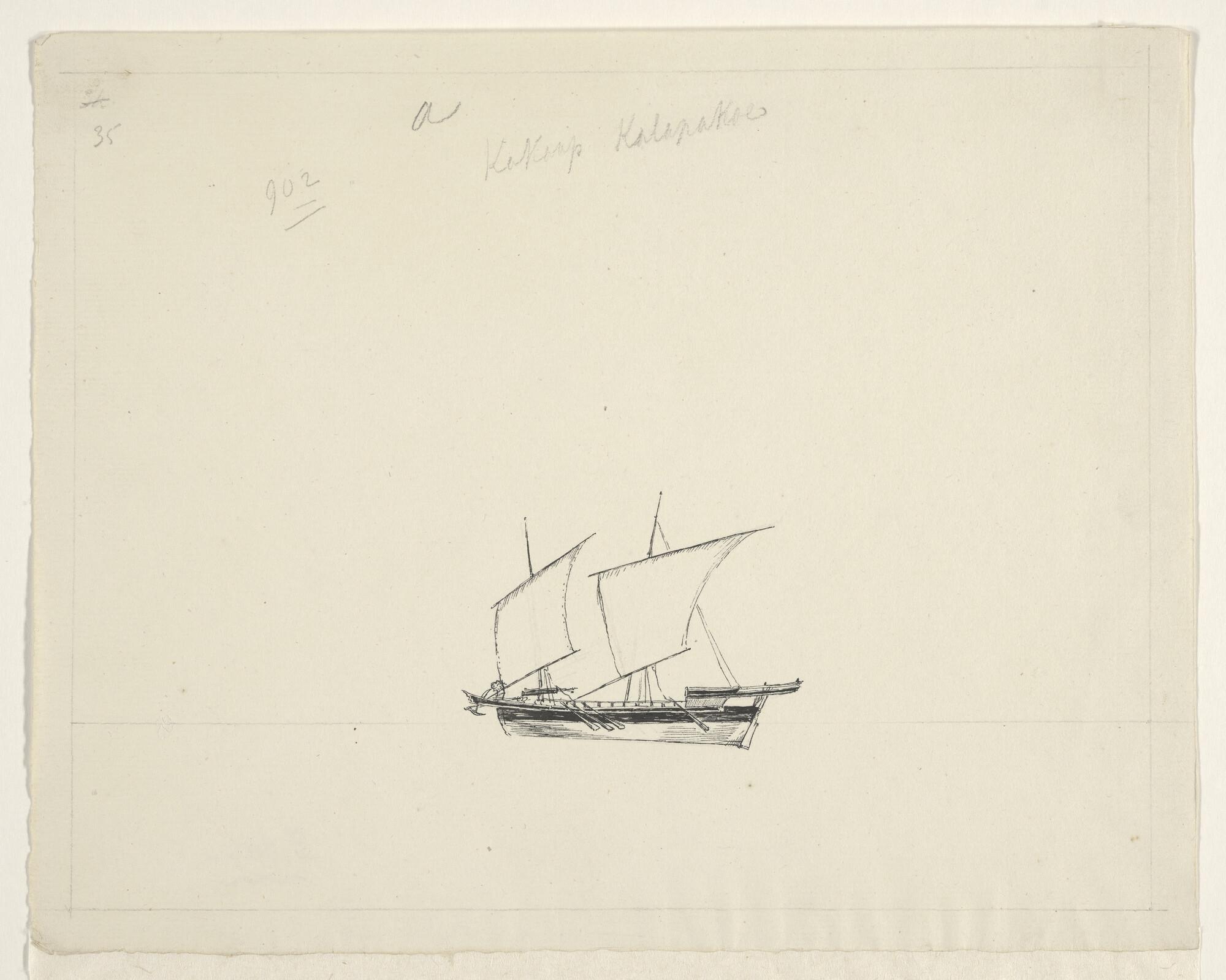Tekening van een inlands vaartuig uit de Oostindisch...