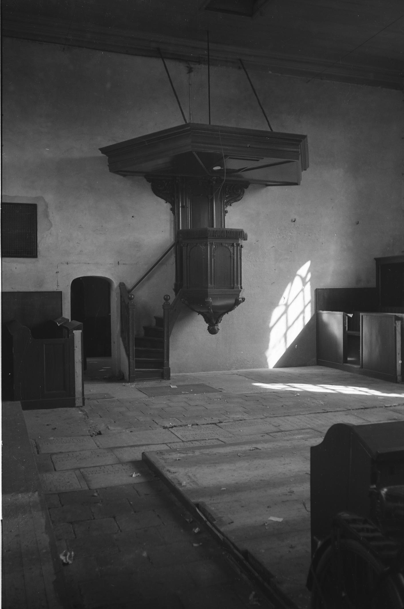 Kerkinterieur met preekstoel, Ter Heijde, 1943 (zwar...