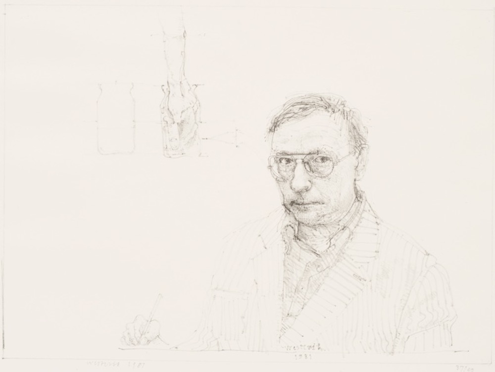Zelfportret met hand in glas