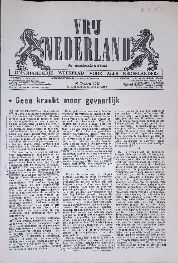 Vrij Nederland, gedrukt te Londen, 20 oktober 1945