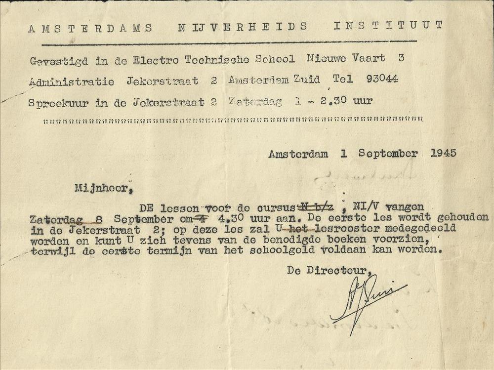 Amsterdams Nijverheids Instituut - bericht voor dhr ...