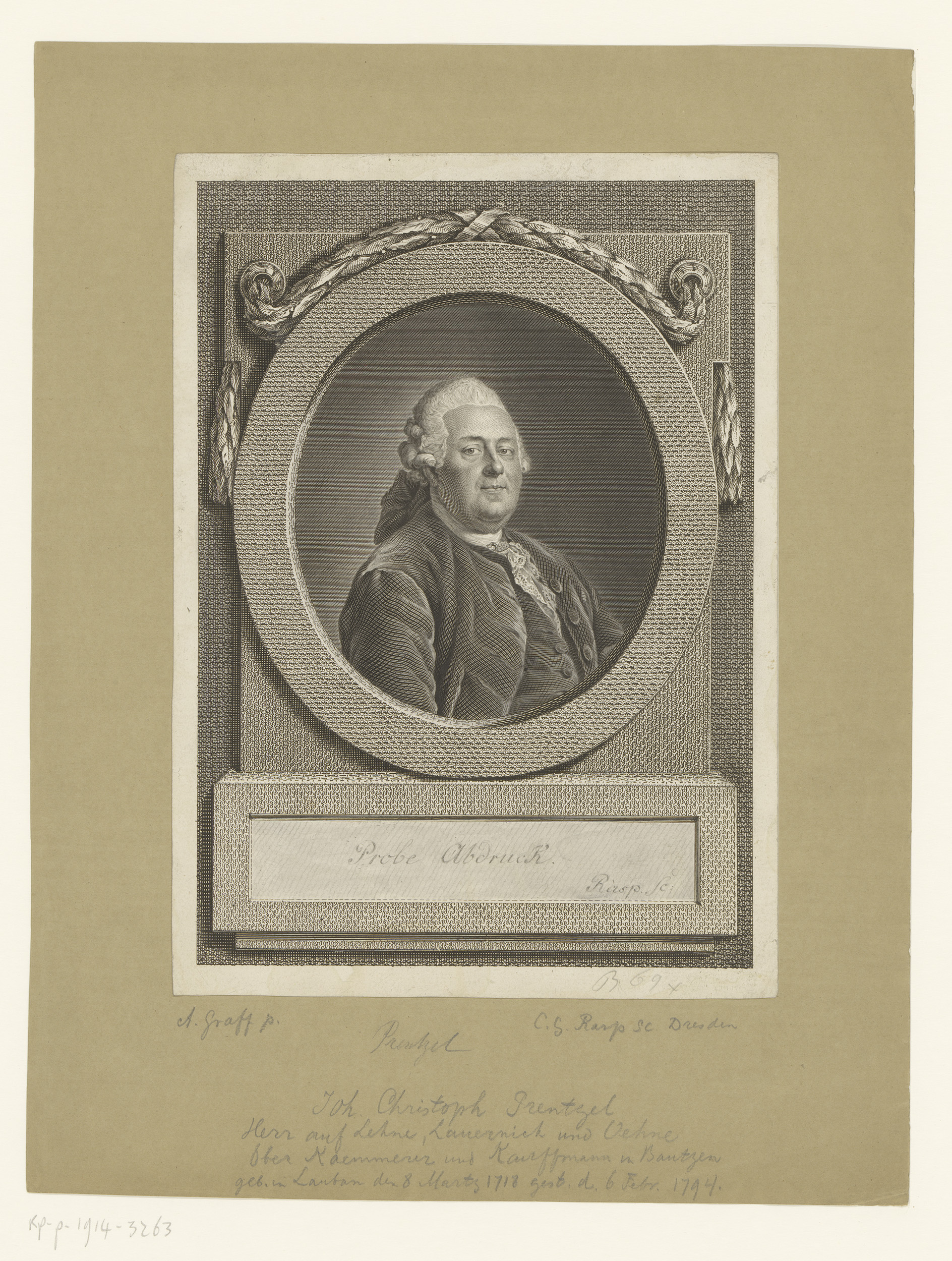 Portret van Johann Christoph Prentzel