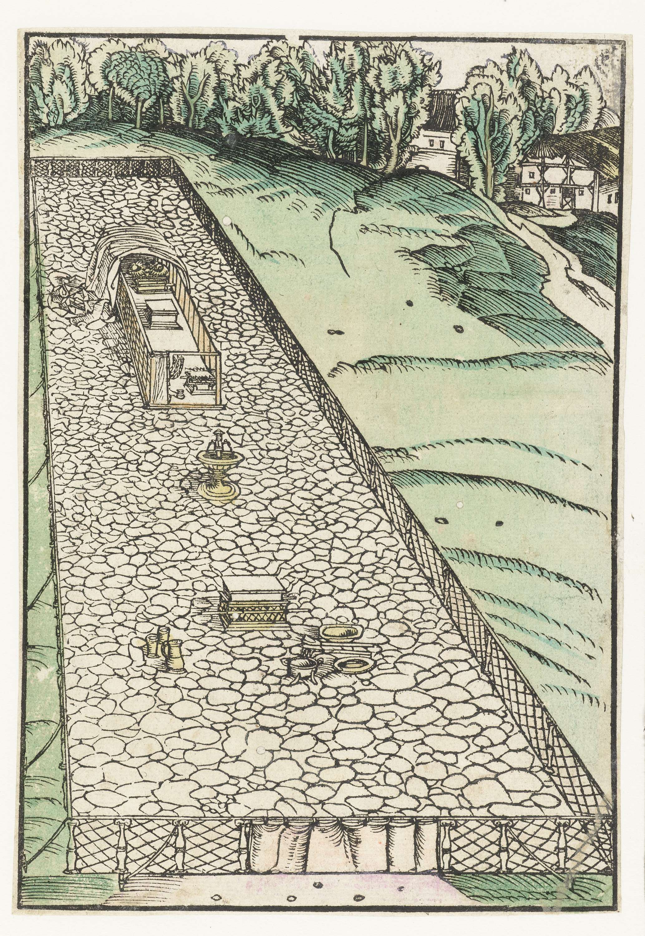 Hof met het tabernakel, brandofferaltaar en wasvat