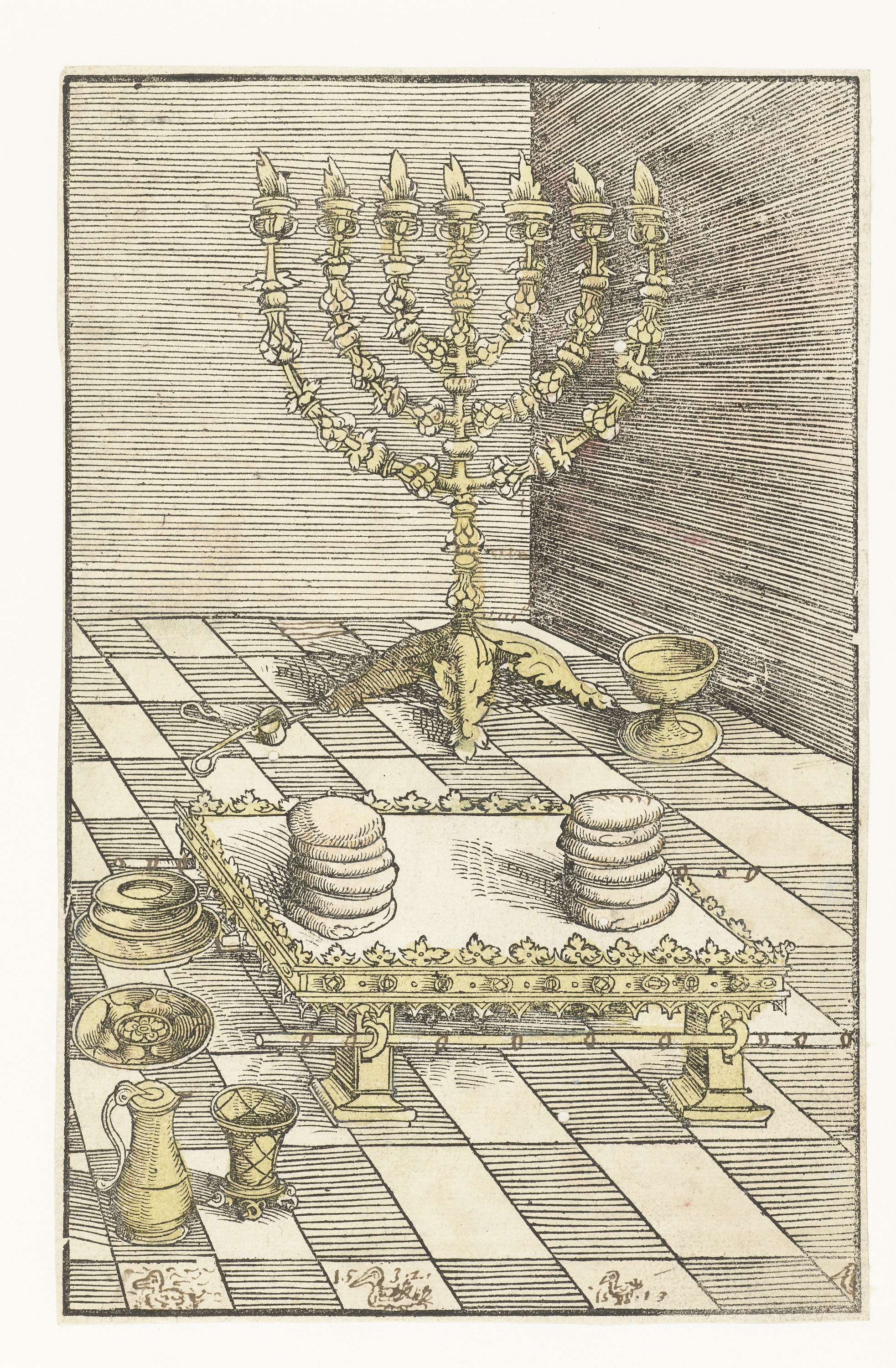 Zevenarmige kandelaar en tafel met het toonbrood