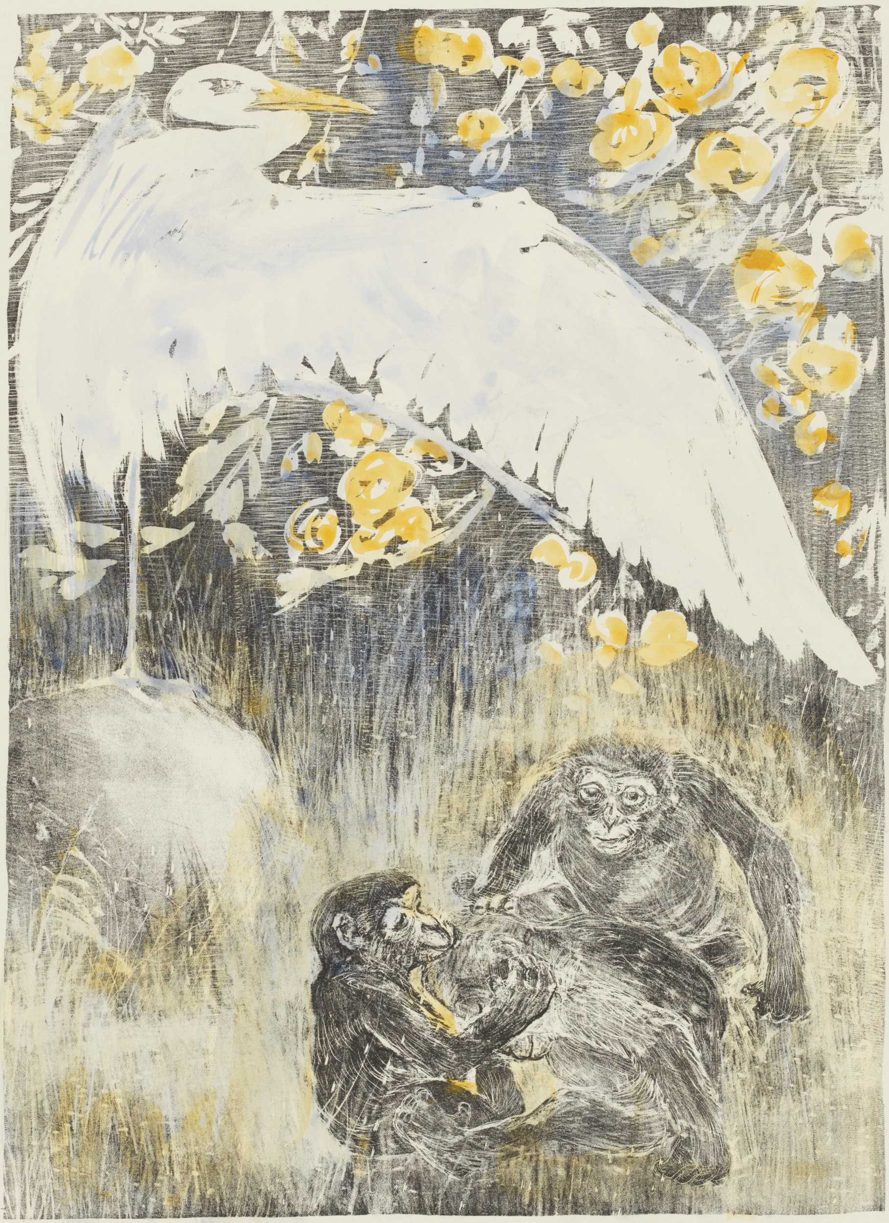 Reiger met drie apen