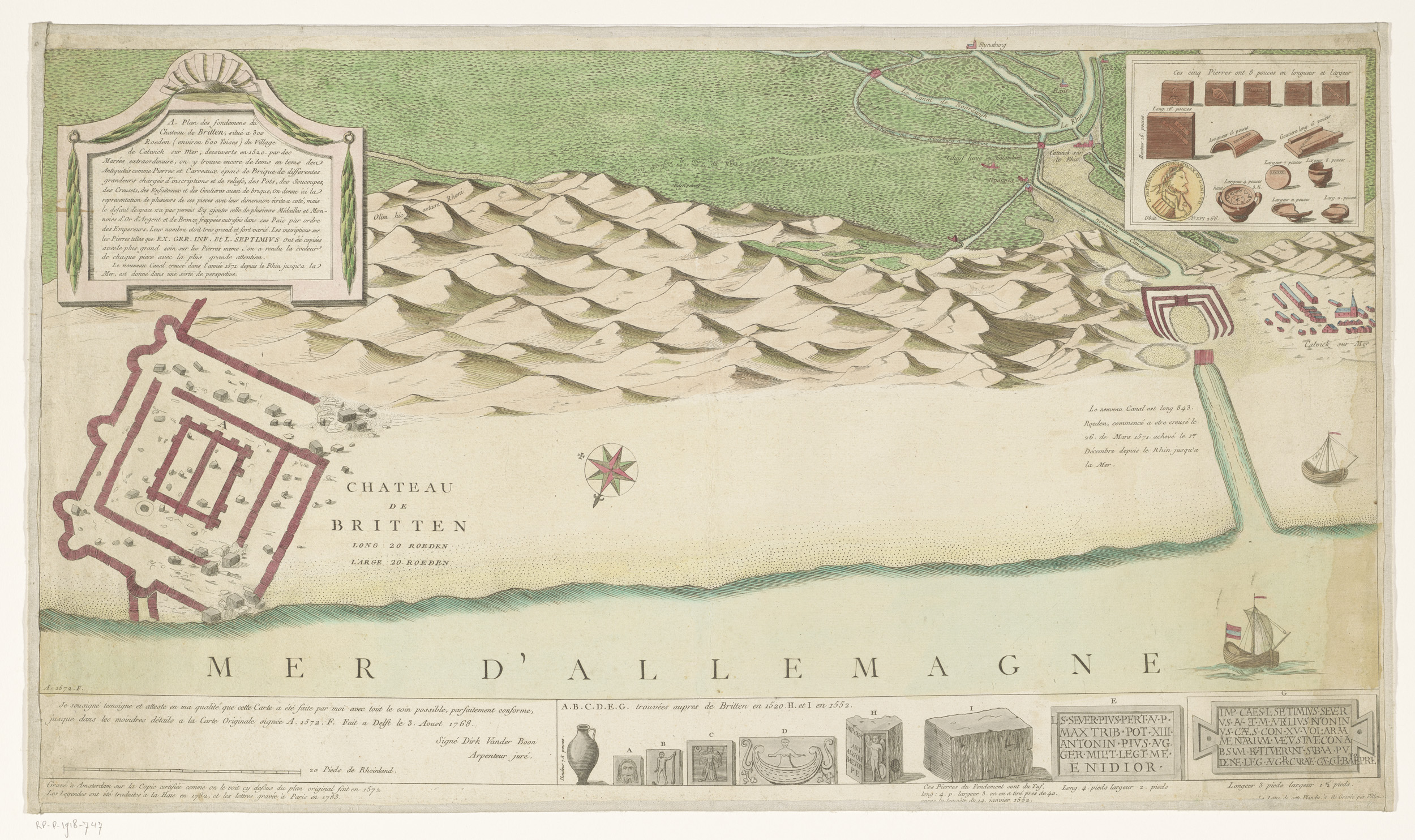 Plan van de kust bij Katwijk met de fundamenten van ...