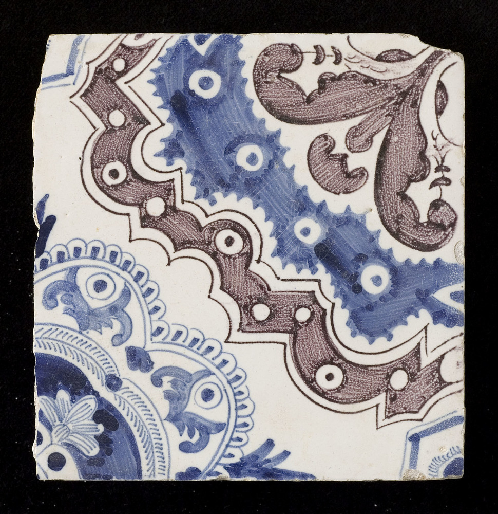 Tegel van keramiek met tinglazuur, voorstellende: or...