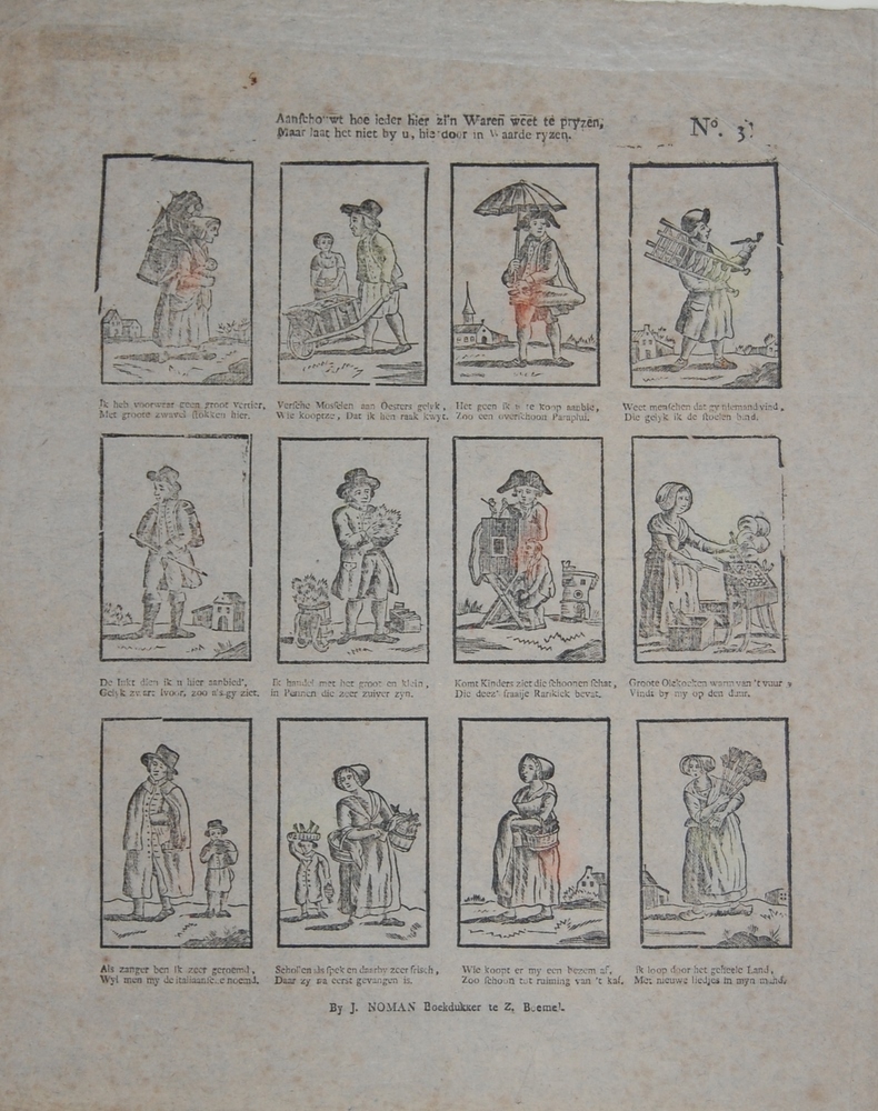 Centsprent, twaalf prentjes met mannen en vrouwen di...