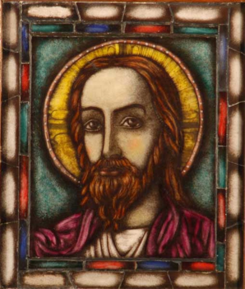 Glas in lood, gebrandschilderd, voorstellende portre...