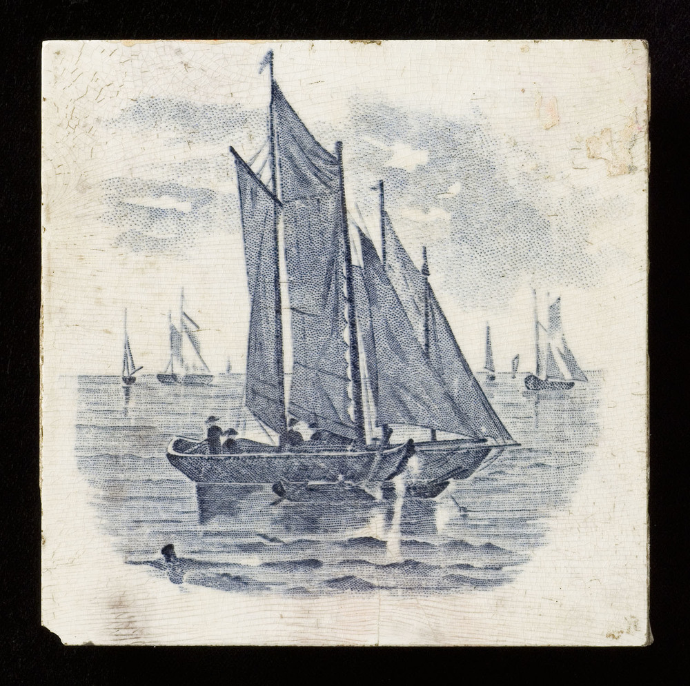 Tegel van keramiek in transferdruk, voorstellende: t...