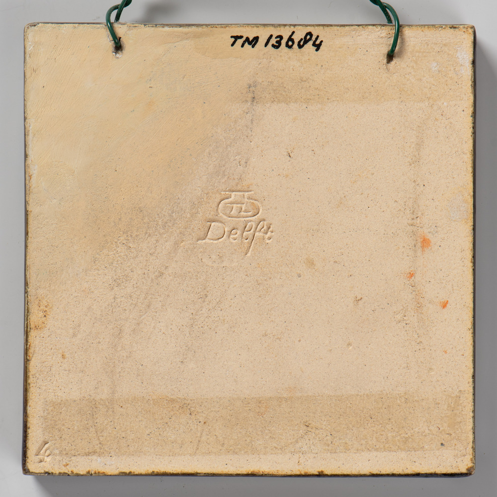 Tegel van keramiek met tinglazuur, voorstellende: ma...
